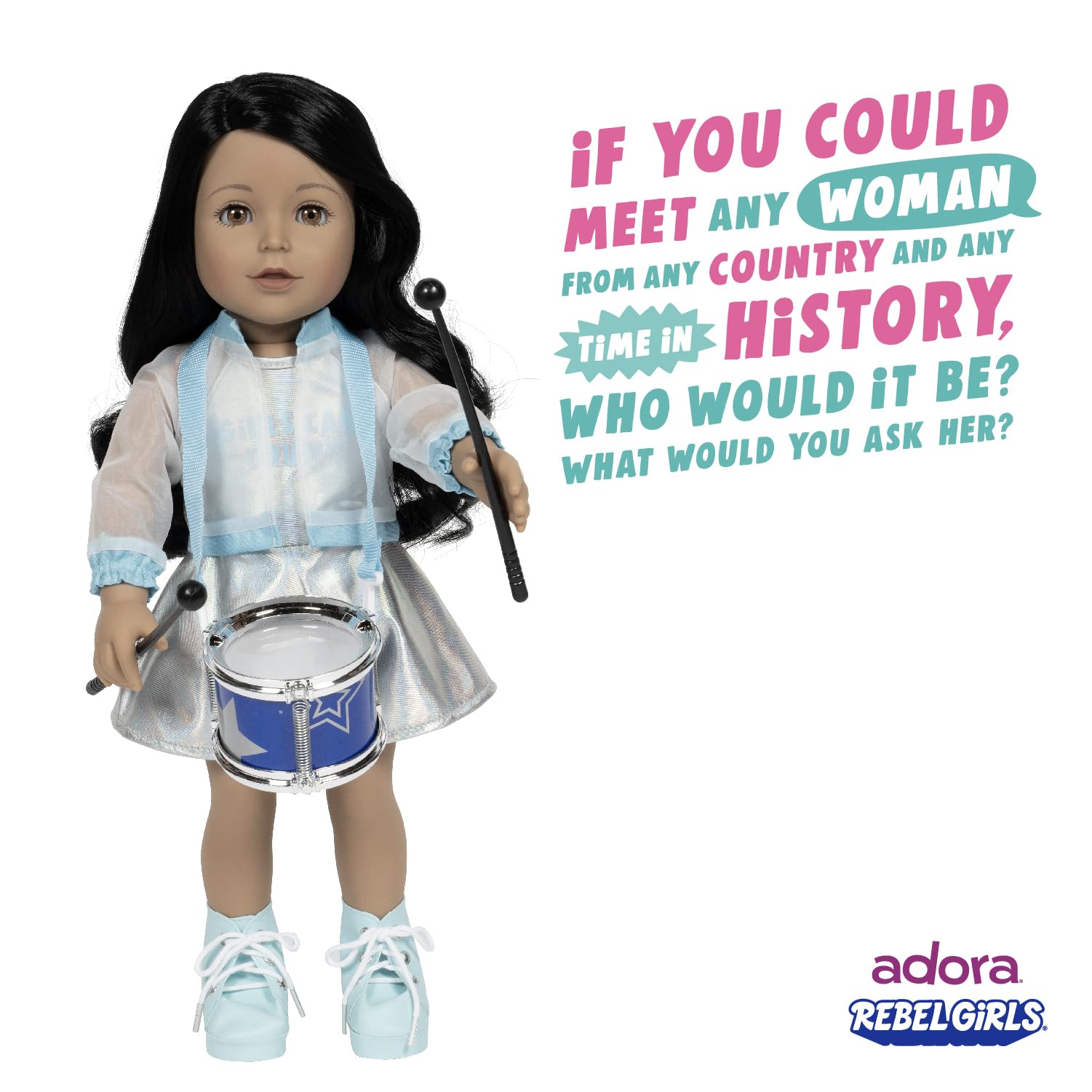 Get ready for long-lasting imaginative play with Adora Rebel Girls Doll Collection! These 18inch fashion dolls are inspired by real-life women, who will empower you to dream big and be confident. We believe that every girl has the strength to change the world. So what are you waiting for? Join in and let the adventures begin! The Adora Rebel Girls Creator doll was inspired by Millo Castro Zaldarriaga, a Cuban drummer girl who rocked to her own beat, breaking barriers and inspiring girls everywhere. Stylish and edgy, she wears a dazzling dress with a bold GIRLS CAN DRUM graphic print. Her light blue platform boots give this 18-inch doll the perfect flair for her drumming adventures, and a detailed blue drum set and black sticks, allowing her to showcase her musical talent. Both kids and parents will love the Rebel Girls! Providing positive inspiration for young girls as they grow, the Rebel Girls collection steps in to encourage and inspire them to embrace their uniqueness. This toy collection is perfect for kids aged 6 and up, offering a world of positivity, creativity, and endless fun! Complete the Adora Rebel Girls collection with all four dolls and let your little one enjoy endless hours of fun, interactive play.