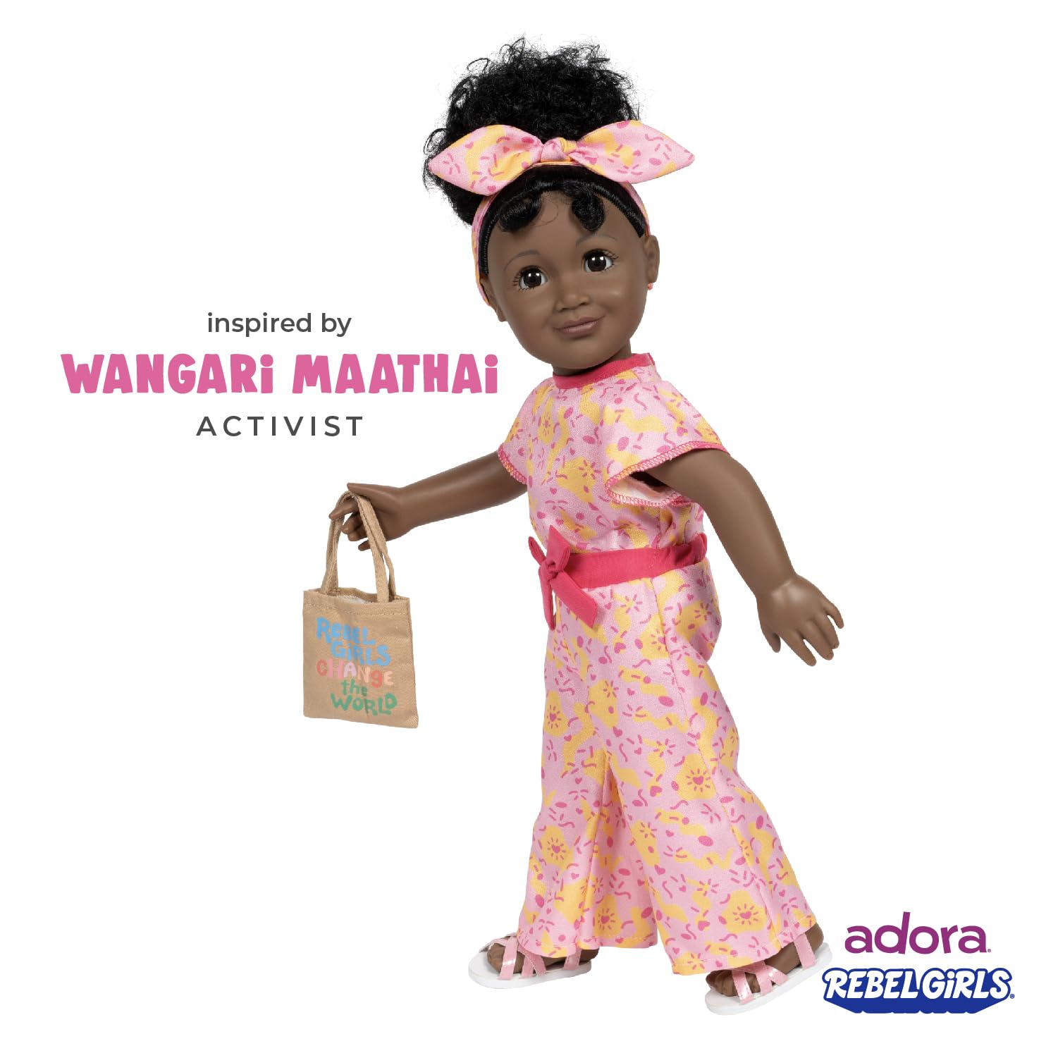 Get ready for long-lasting imaginative play with Adora Rebel Girls Doll Collection! These 18’inch fashion dolls are inspired by real-life women, who will empower you to dream big and be confident. We believe that every girl has the strength to change the world. So what are you waiting for? Join in and let the adventures begin! The Adora Rebel Girls Leader doll is inspired by Wangari Maathai, an environmentalist leader and Nobel laureate. She looks pretty in a vibrant pink and yellow patterned blouse paired with matching pants. Her ensemble is completed with a coordinating hairband, a Rebel Girls printed tote bag, and cool pink sandals, making her ready for any adventure. She has pretty dark brown eyes with black eyelashes, deep dark skin, and super curly black hair tied up in a bun. This Rebel Girl is not just about looking good; she’s also about caring for the environment and encouraging kids to be themselves and do good things! Both kids and parents will love the Rebel Girls! Providing positive inspiration for young girls as they grow, the Rebel Girls collection steps in to encourage and inspire them to embrace their uniqueness. This toy collection is perfect for kids aged 6 and up, offering a world of positivity, creativity, and endless fun! Complete the Adora Rebel Girls collection with all four dolls and let your little one enjoy endless hours of fun, interactive play!