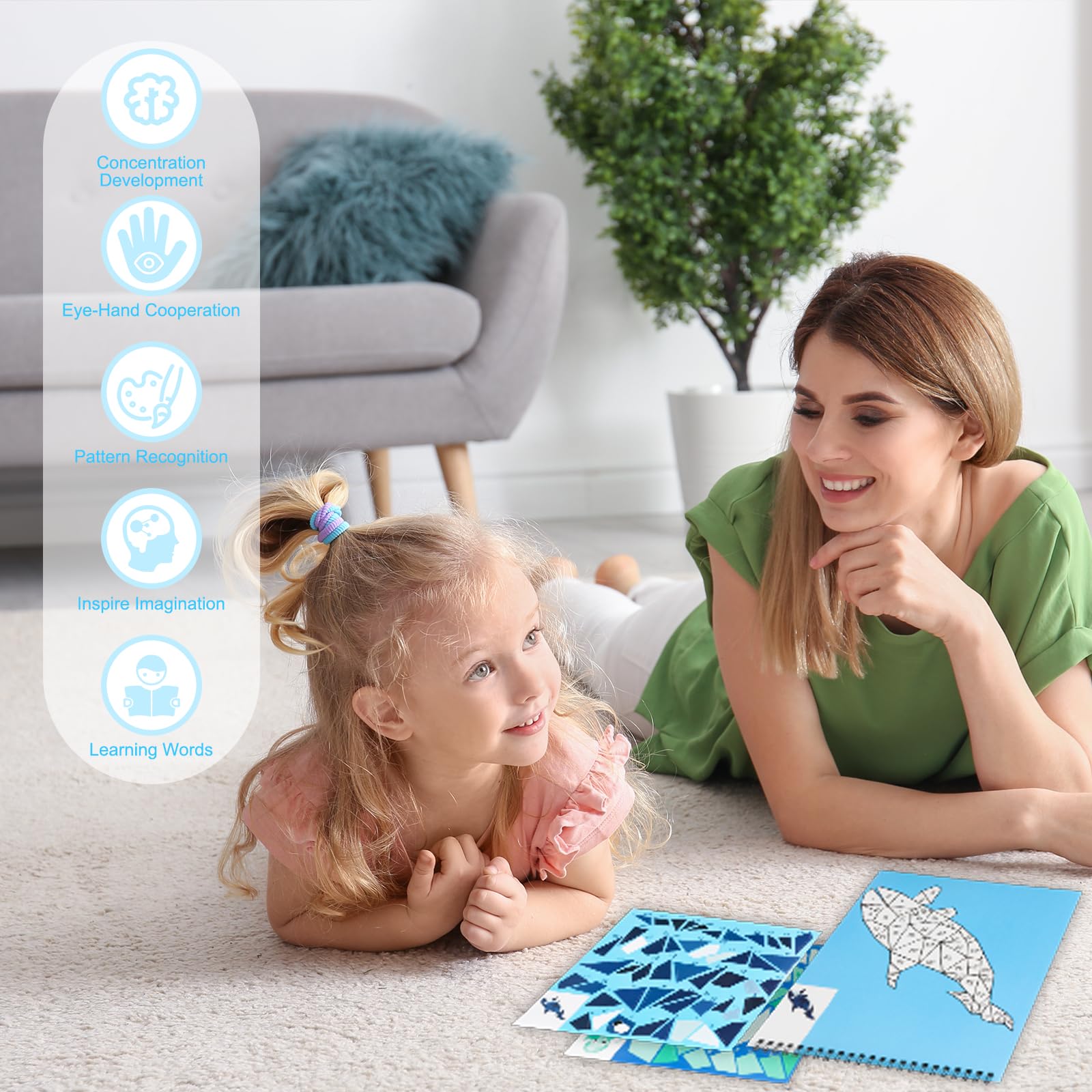 Aeahaly 2 Pack Crafts For Kids Ages 4-8 Paint By Sticker, Reusable Sticker Book For Kids Ages 4-8 Boys And Girls Birthday Gifts Party Favor, Travel Activity Book Set For Learning (Dinosaur+Ocean)