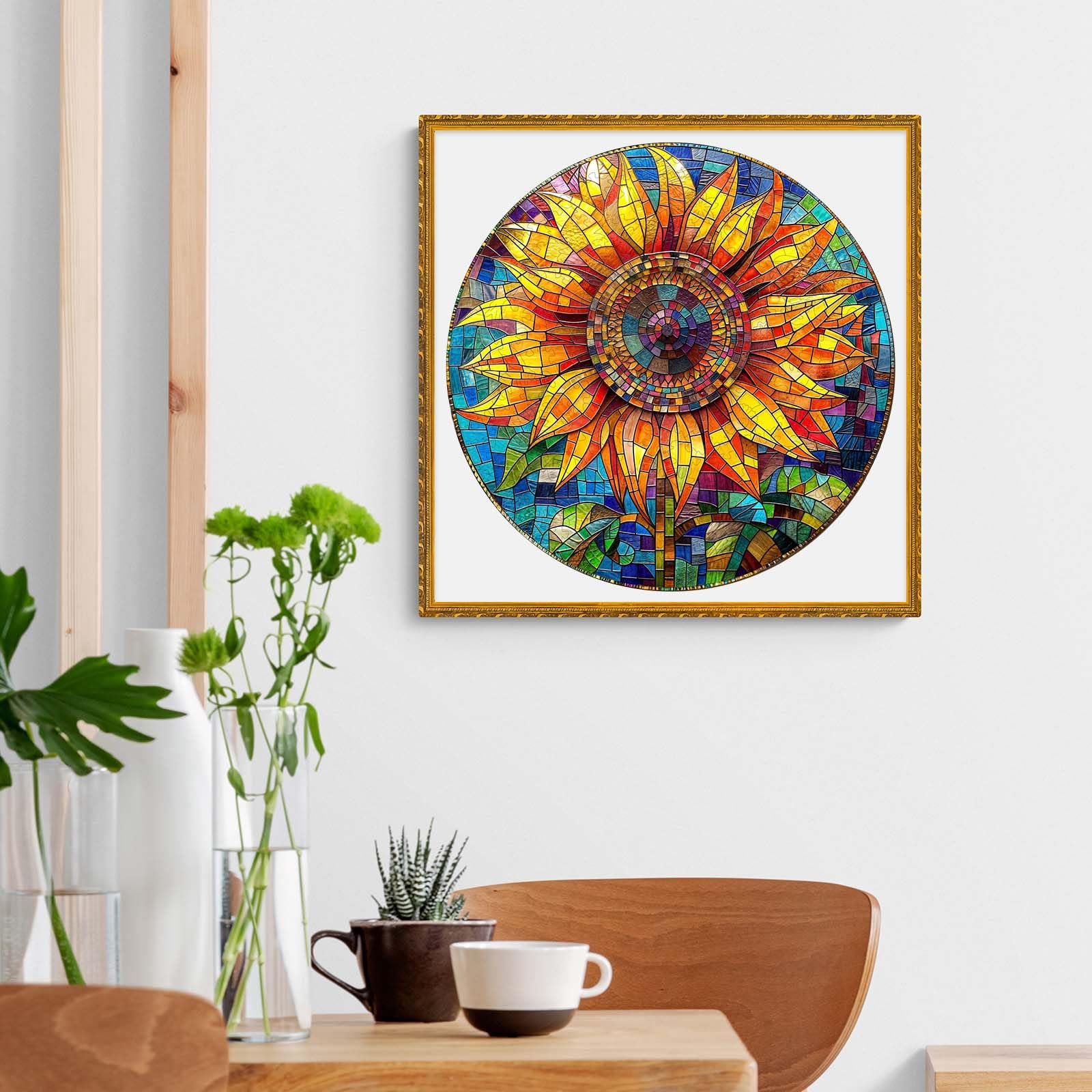 AEEKDOOK Wooden Puzzles for mature-themeds Stained Glass Sunflower Wood Puzzles mature-themed - Unique Animal Shape Wooden Jigsaw Puzzles for mature-themeds for Puzzle Lovers (13.4 * 13.4in - 300 Pieces)