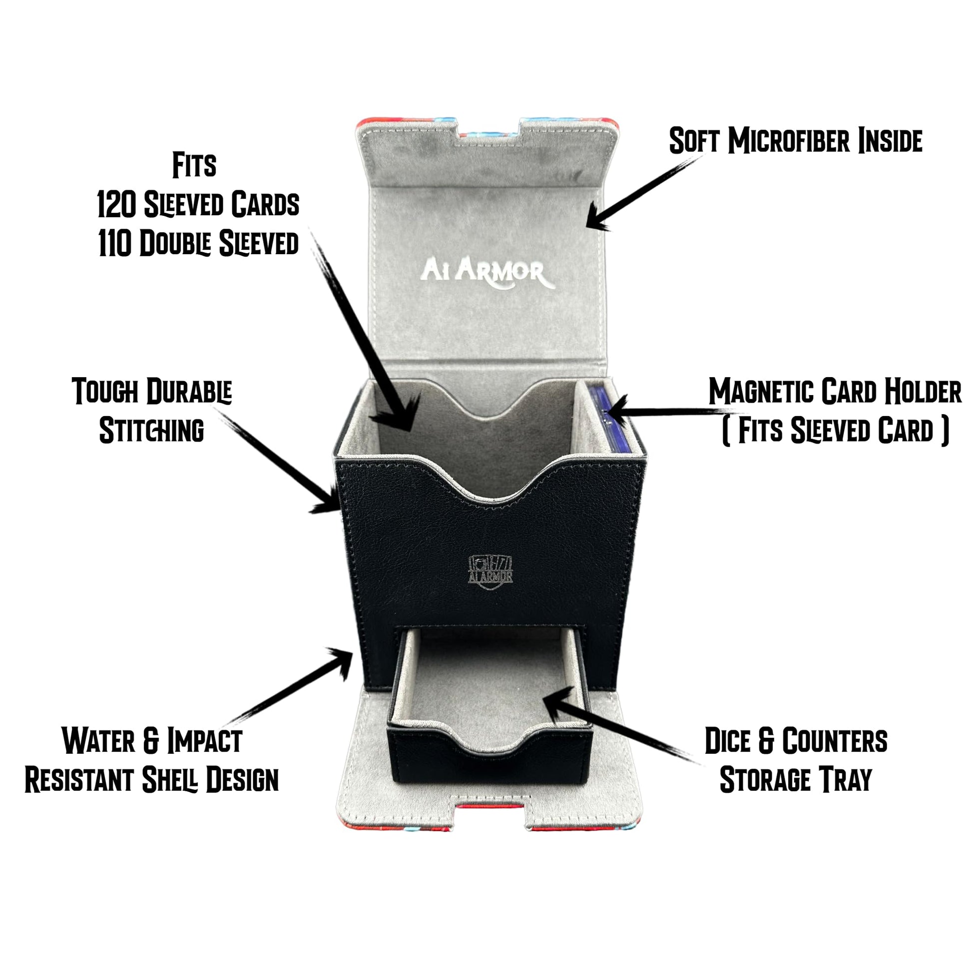 Ai protective covering MTG Commander 100+ Card Custom Art Deck Box With Storage (Green/Red)