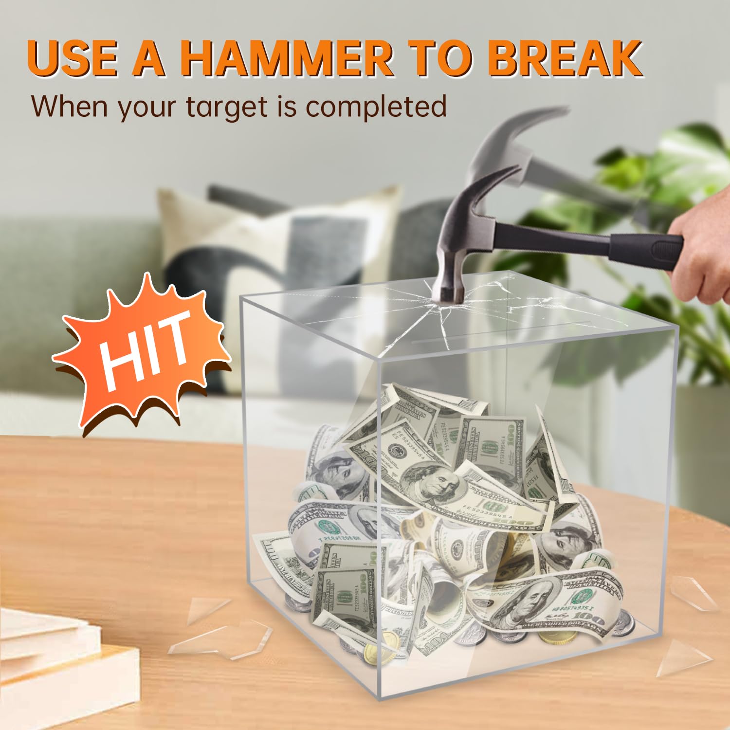 Aipor Clear Piggy Bank For Adults/Kids Must Break To Open, Unopenable Acrylic Piggy Bank, Acrylic Clear Piggy Bank For Boys/Girl