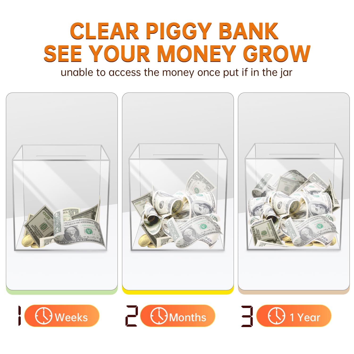 - Q: Can this piggy bank be opened without breaking it? A: No, the AIPOR Clear Piggy Bank is designed to be unopenable without breaking. This feature encourages users to save money until they choose to break it open, which is ideal for preventing impulsive withdrawals.