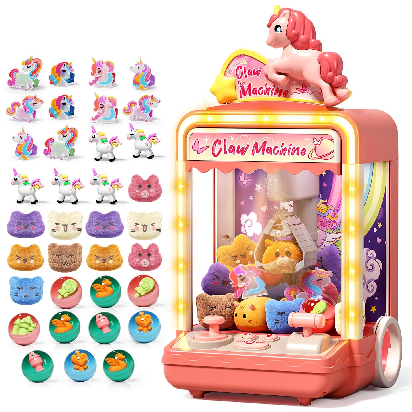 Aiqi 35 PCS Kids Claw Machine, Mini Candy Vending Grabber, Prize Dispenser Toys for Girls and Boys, Electronic Claw Game Machine