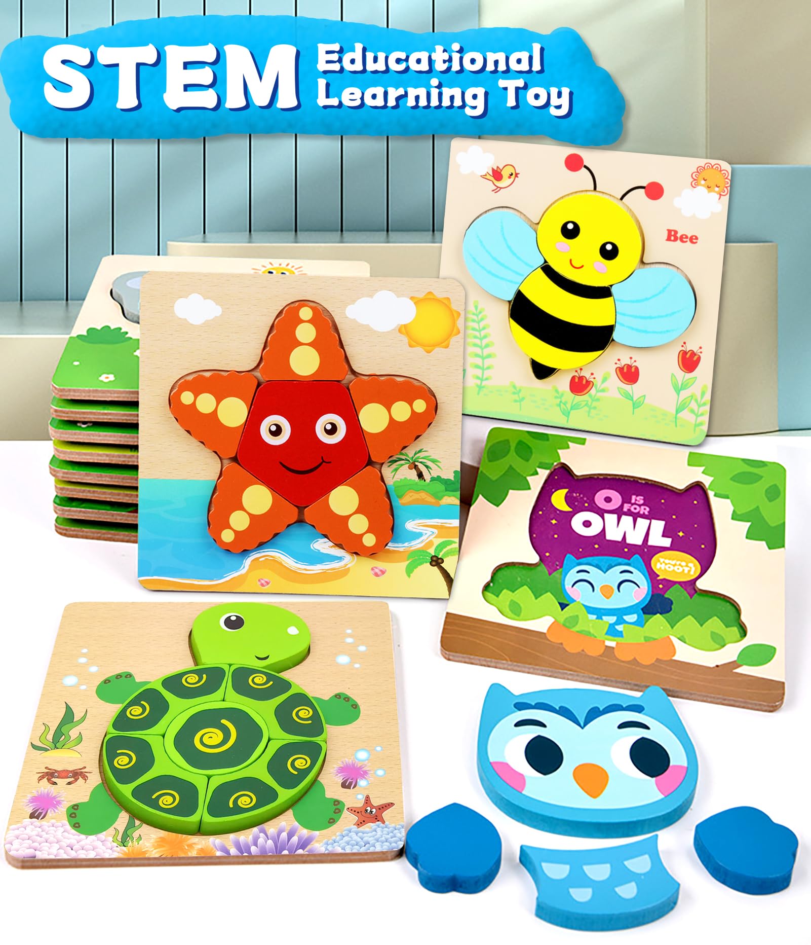 View compareAiziyuo Animal Wooden Puzzles, Montessori Toys For Toddlers 1-3, 8 Pack Baby Puzzle For Kids1 2 3+ Years Old, Preschoool Learnin