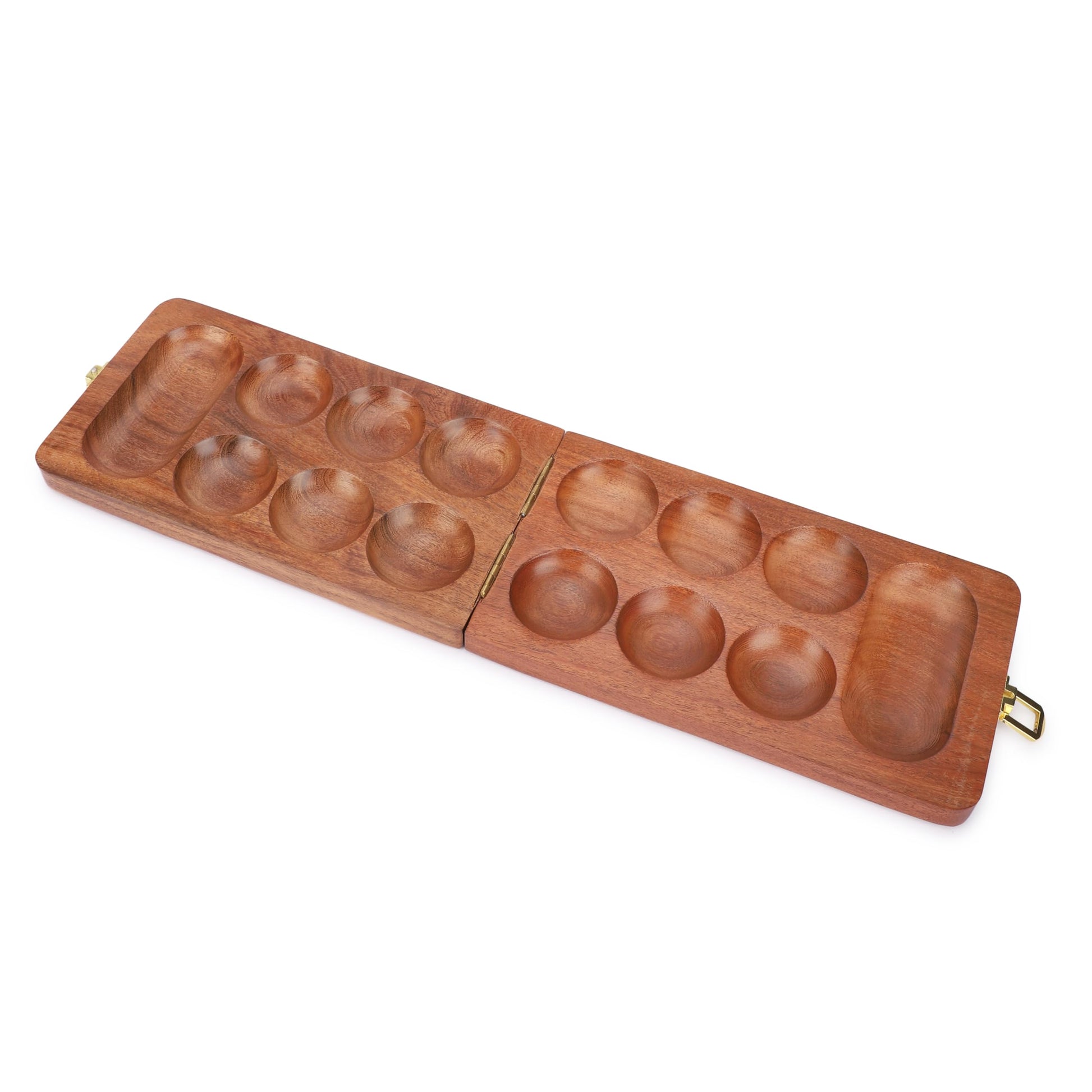 Ajuny Wooden Mancala Board Game Set - Classic Board Games, Portable Folding Travel Mancala Board With Marbles (72+8 Stones), Ide
