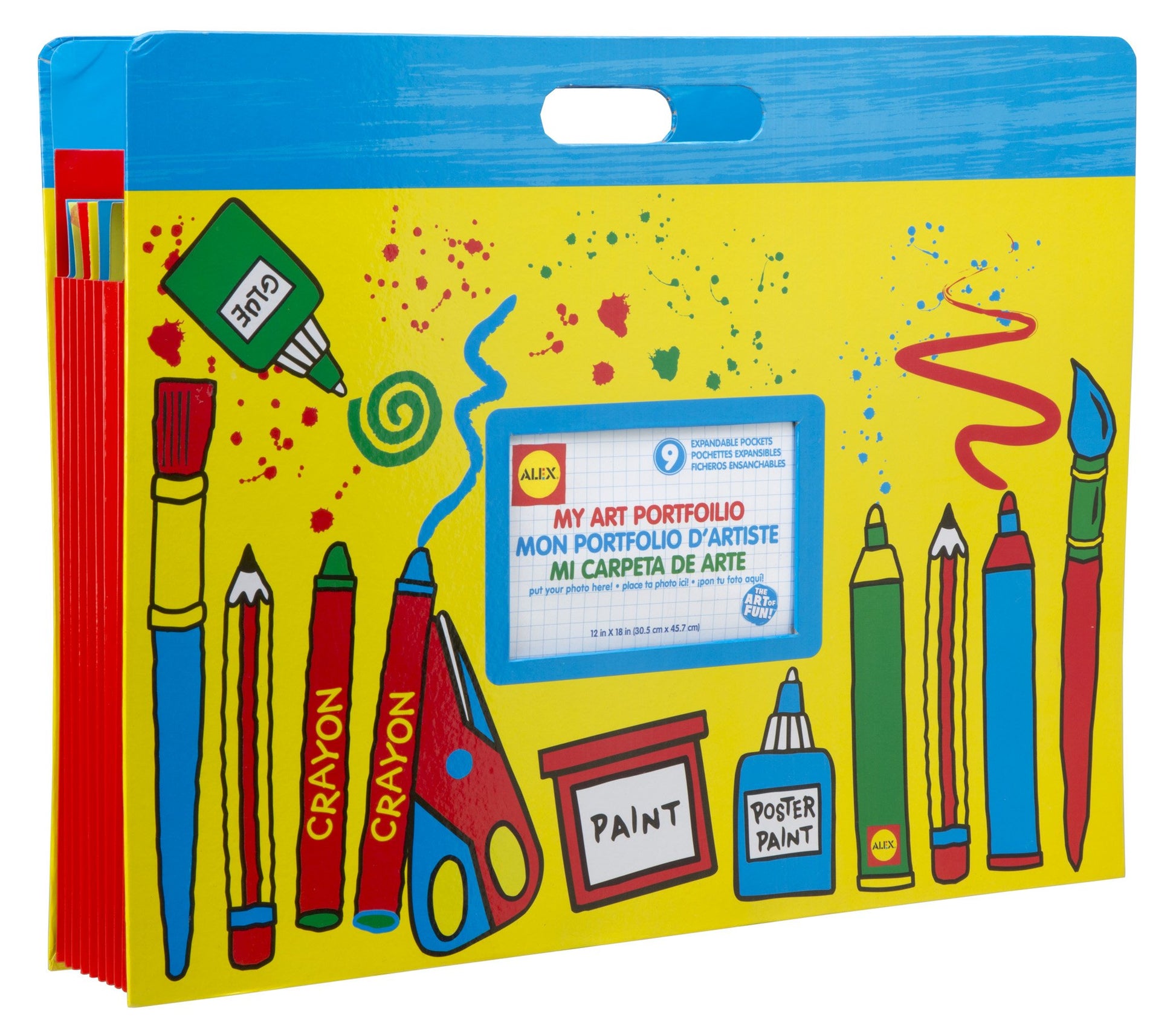 ALEX Toys Artist Studio My Art Portfolio features an accordion style folder to hold dozens of papers. The 15in. x 19in. handled case has an expandable, accordion style folder with 9 pockets that each hold dozens of 12in. x 18in. papers. Personalize your little ones portfolio with a photo or drawing that fits neatly into the 4in. x 6in. clear pocket in front. Recommended for children 3 years of age and older.