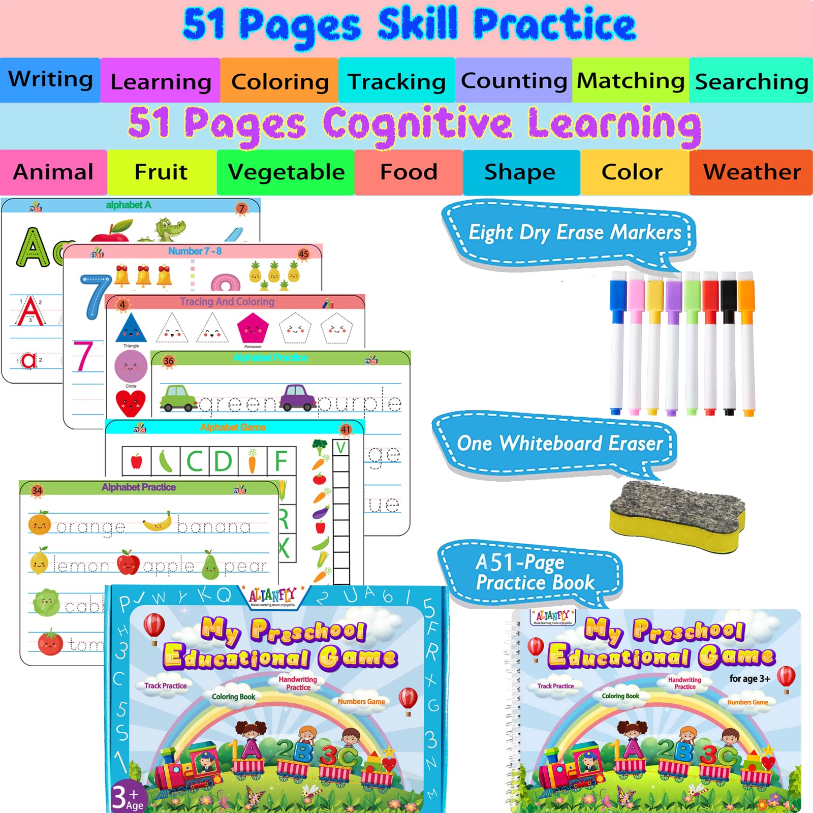 Alianfly Preschool Learning Activities Educational Workbook - Toddler Prek Montessori Handwriting Practice Activity Tracing Toys