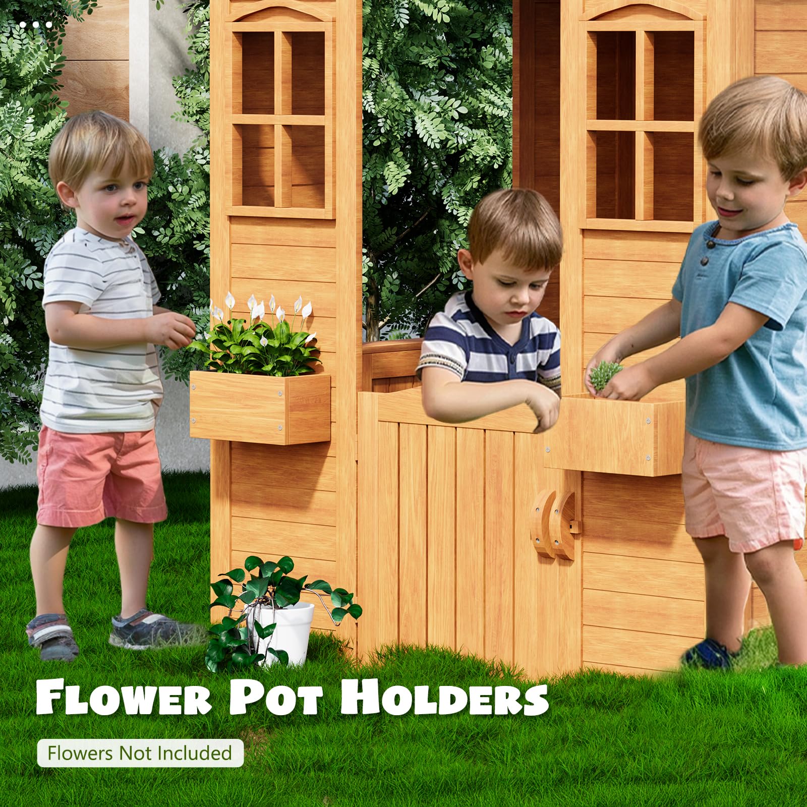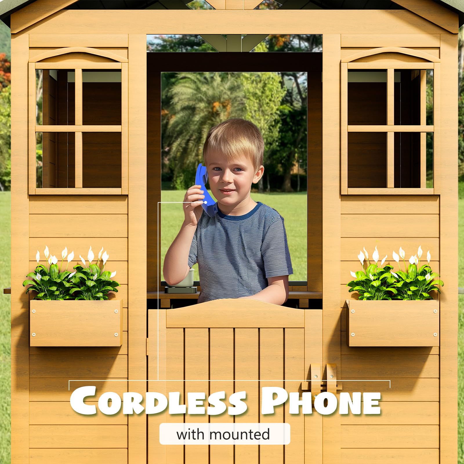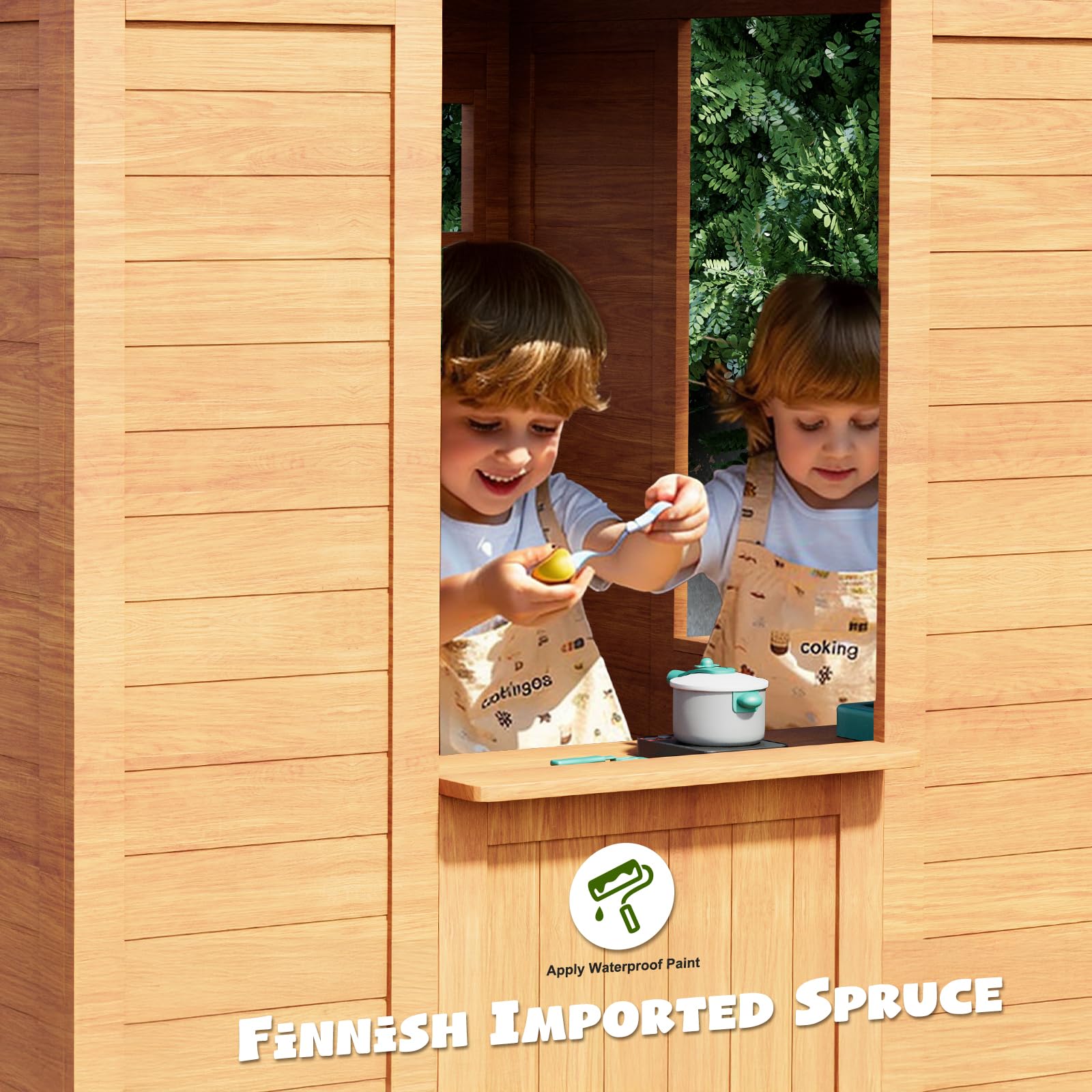 All Spruce Outdoor Kids Playhouse, Toddler Wooden Playhouse for Kids Ages 3-10, with Sink, Stove, Flower Pot Holders, Phone, Kit