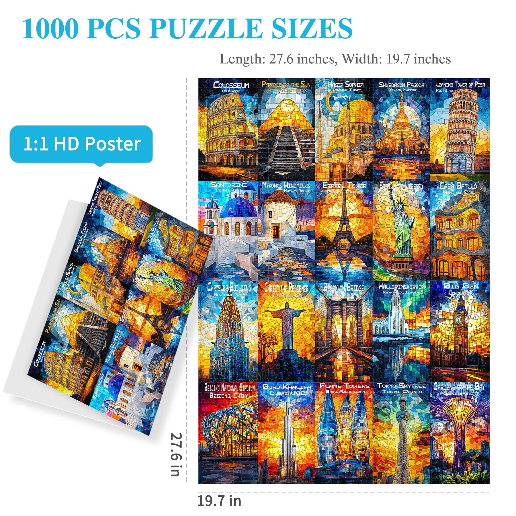 View compareALL4JIG World Landmark Fun Jigsaw Puzzles for Adults and Kids, 1000 Pieces, Christmas Secret Santa Gift, White Elephant Gifts, N