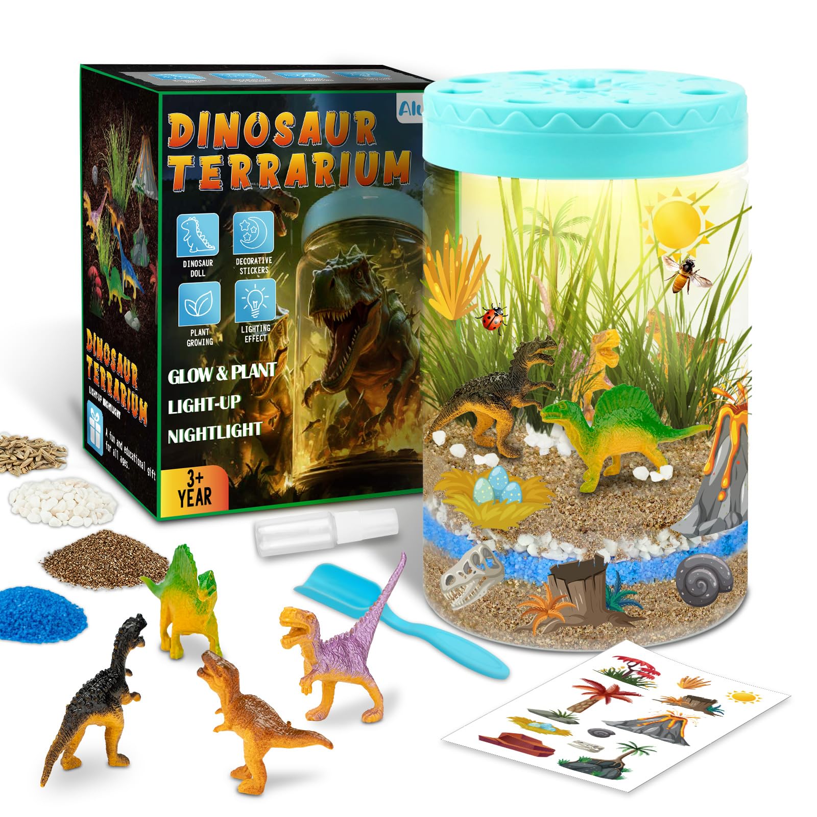 Aluabi Light Up Dinosaur Terrarium Kit For Kids,Educational Science Kits,Gardening Kits Science Activities For Boys & Girls,Diy Creative Dinosaur Toys,Arts And Crafts Kit Gifts For Ages 4 5 6 7 8-12