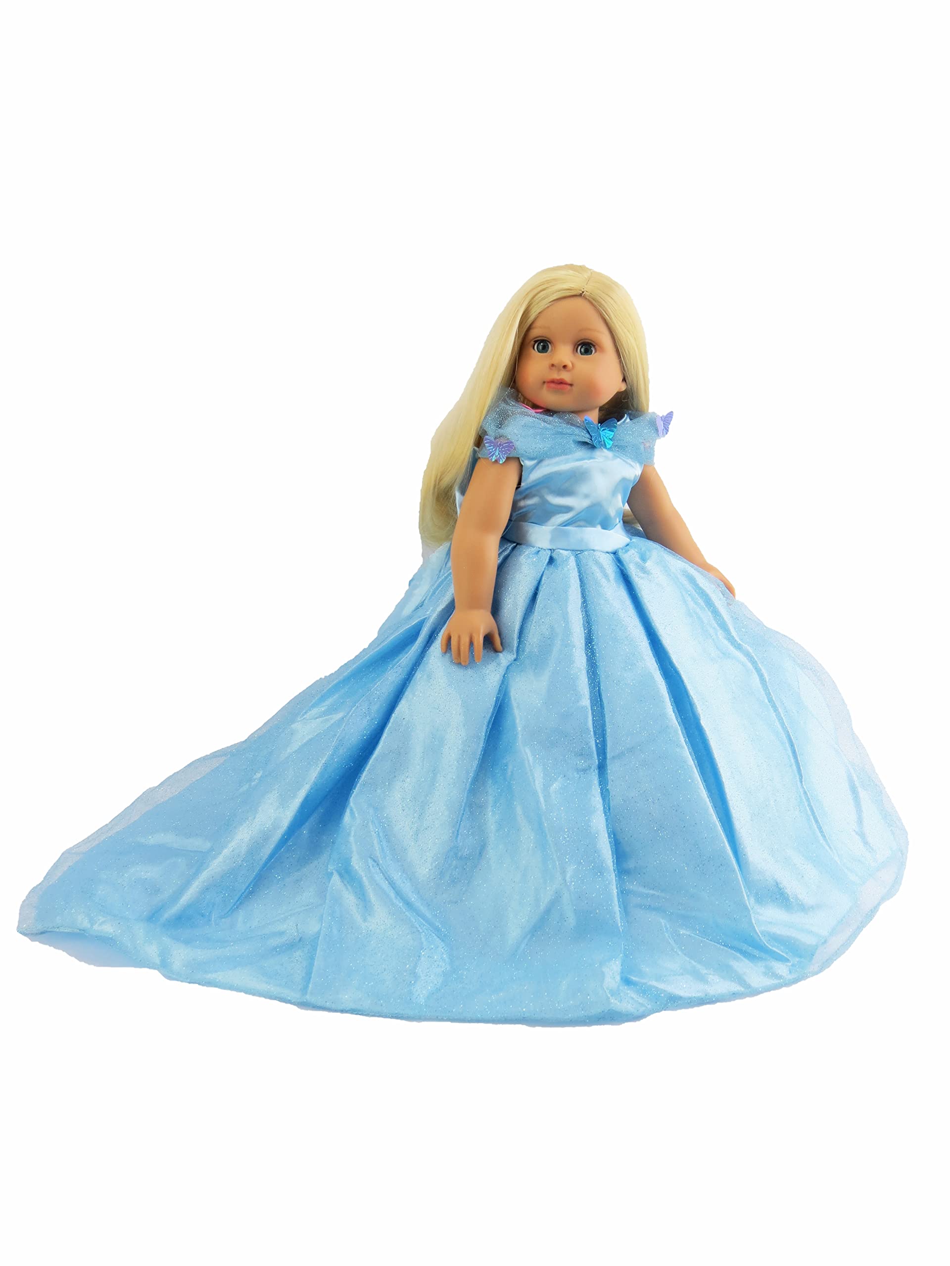 Enhance your doll's wardrobe with our American Fashion World Accessories for 18-Inch Dolls. This stylish and trendy accessory is designed to provide a realistic and fashionable look for your little one's favorite dolls. Made with enhanced materials and meticulous craftsmanship this Blue Gown with Butterflies is the perfect addition to any doll fashion enthusiast's collection. enhanced QUALITY AND DURABILITY:Crafted from top-notch materials our Blue Gown with Butterflies ensures durability and longevity. The well-made construction guarantees that it will withstand hours of play and dress up sessions providing endless fun for your child. FEATURING A CLASSIC AND ATTRACTIVE DESIGN: Featuring a sleek and fashionable design our blue princess gown adds a touch of sophistication to any doll's outfit. The attention to detail in the stitching and craftsmanship gives it an authentic princess gown appearance making it a standout piece in your doll's wardrobe. INSPIRE IMAGINATIVE PLAY AND IDEAL GIFT: Encourage imaginative play and creative storytelling with this beautiful gown. It allows your child to express their doll's unique personality and fashion sense. This gown also makes for an ideal gift for children who love dolls and fashion fostering their love for imaginative play. BLUE GOWN FOR 18-INCH DOLLS: Our Blue Gown with Butterflies for 18-Inch Dolls is a must-have accessory for doll enthusiasts. Its enhanced quality fashionable design easy dressing and versatile fit make it a valuable addition to any doll's wardrobe. Enhance your child's playtime experience and let their dolls showcase their style with this trendy and cool accessory.Order now and give your child's dolls the fashionable edge they deserve. Doll shoes are not included. Doll shoes are not included Doll shoes are not included Doll shoes not included