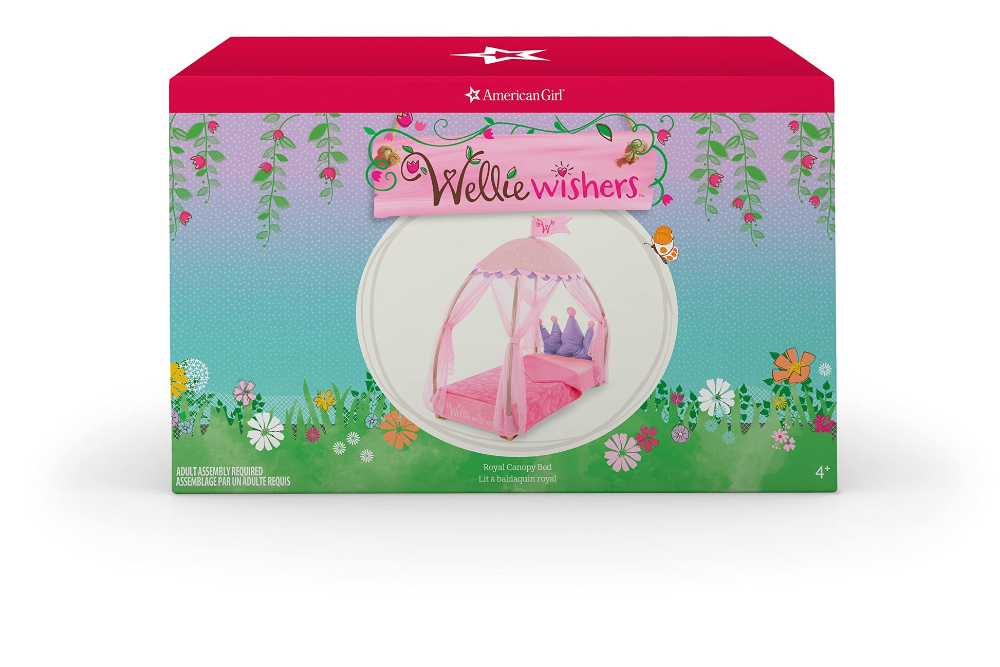 - Q: What are the dimensions of the American Girl WellieWishers Canopy Bed Playset? A: The canopy bed measures approximately 16.54 inches in length, 7.87 inches in width, and has a height suitable for 14.5-inch WellieWishers dolls.