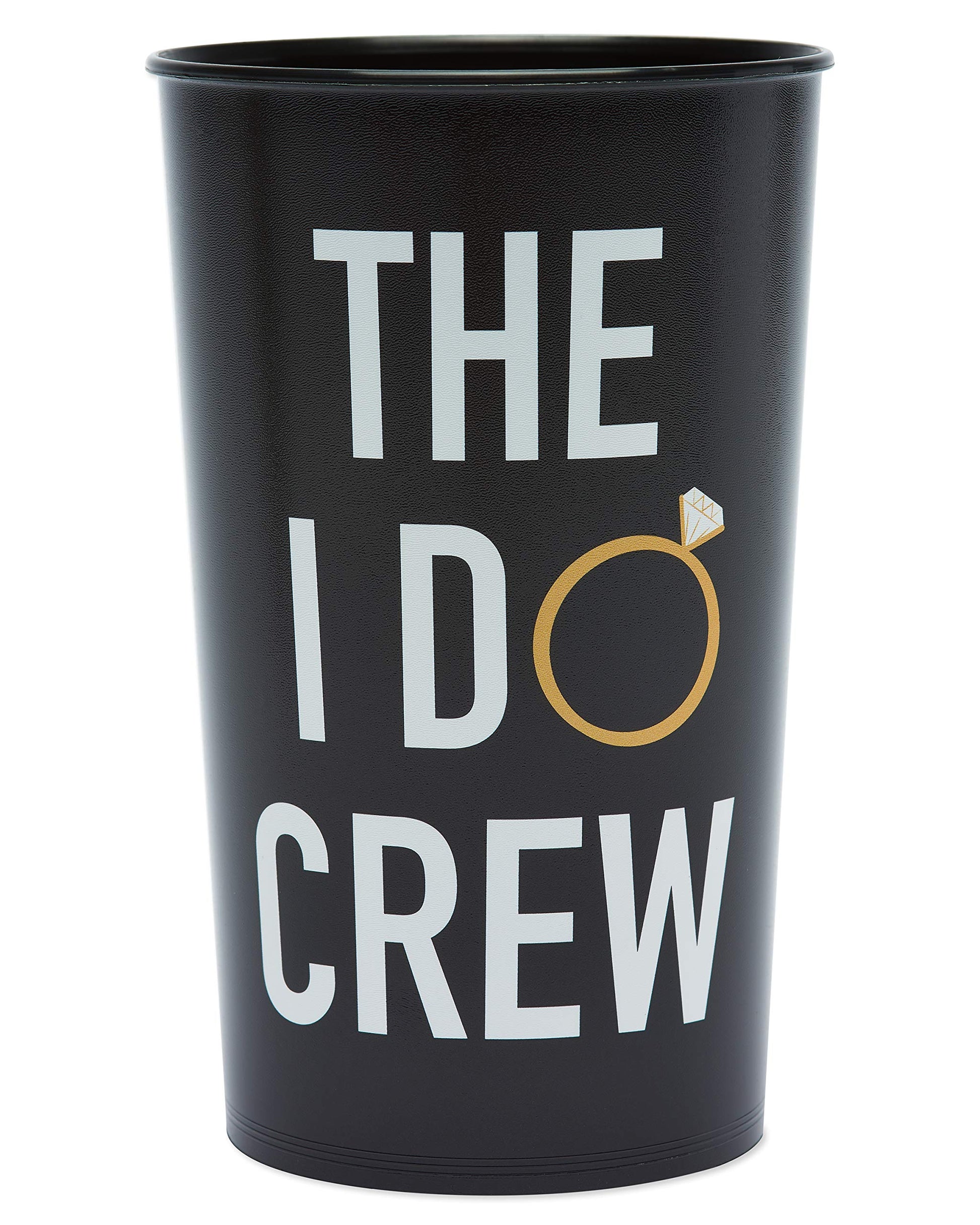 These party cups add a dash of fun to bachelor/bachelorette parties and engagement celebrations. The cups hold 22oz. of your favorite drink, and their plastic construction means they’re dishwasher-safe and reusable. Each cup features “The I Do Crew” text with a diamond ring on a black background. American Greetings offers exceptional greeting cards, gift wrap and celebration products so you can connect in ways that fit your personality and authentic style!