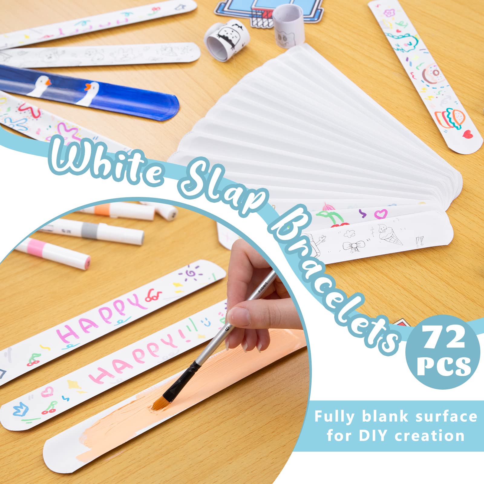 AMOR PRESENT Slap Bracelets Bulk, 64PCS White Slap Bracelets DIY Wrist Band Blank Snap Band for Kids Birthday Party Favors Schoo