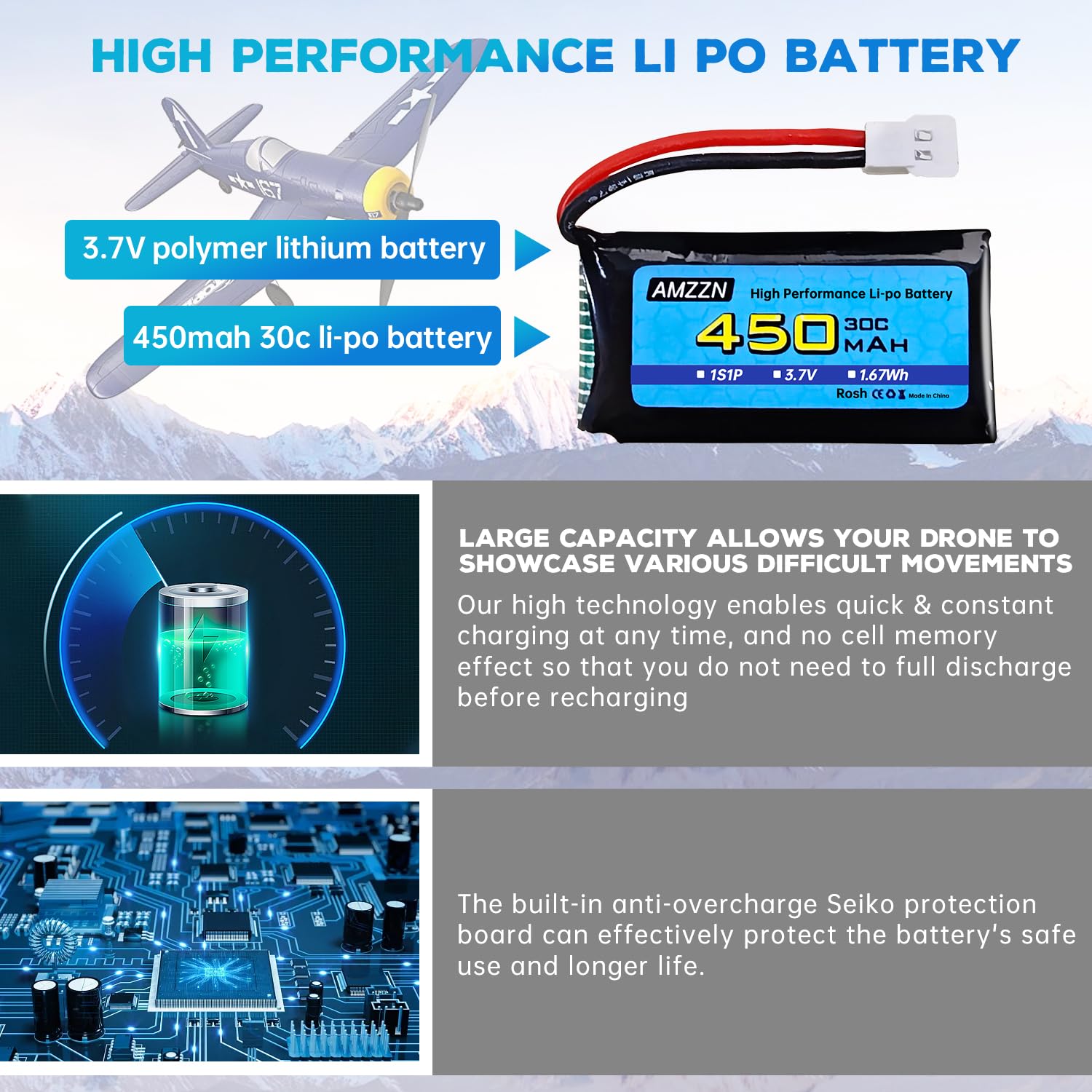 View compareAmzzn 5Pcs 3.7V 450Mah 30C Lipo Battery With 5-In-1 Charger Molex Plug Compatible With Most Rc Drones, Four Axis Aircraft And Sy