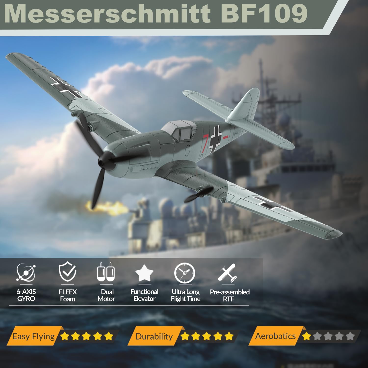 View compareAnburi Rc Plane, 3 Channel Bf - 109 Remote Control Airplane, 2.4Ghz & 6 Axis Gyro Stabilizer, 2 Batteries Included, Ideal For Ad