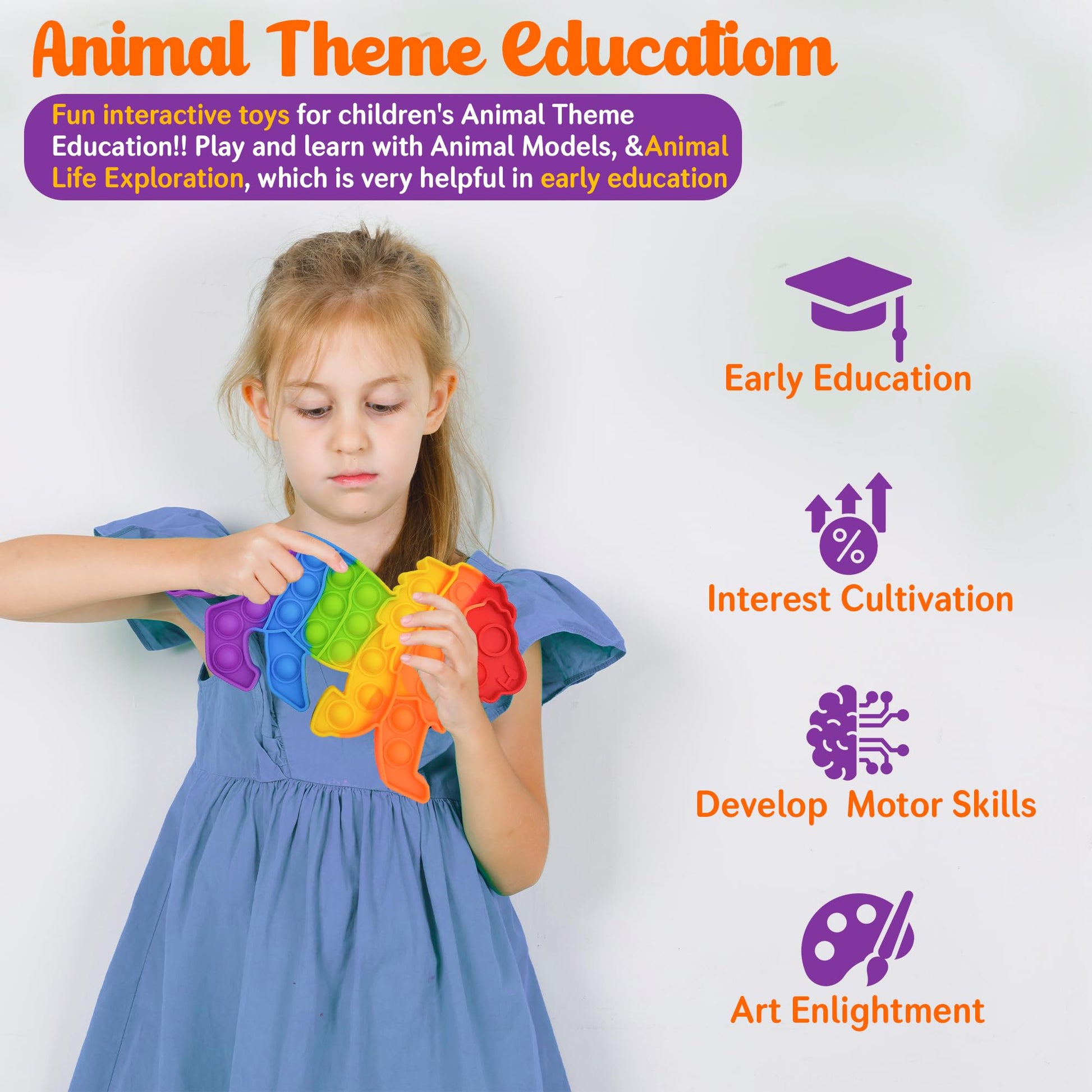 View compareAnimals Pop Fidget Toys Set Silicone Rainbow Dinosaur Popper Fidget Set for Children Sensory Squeeze Toys Stress Reliever Tool for Kids mature-themed ADHD Lion Tiger Horse and Duck 4 Pack
