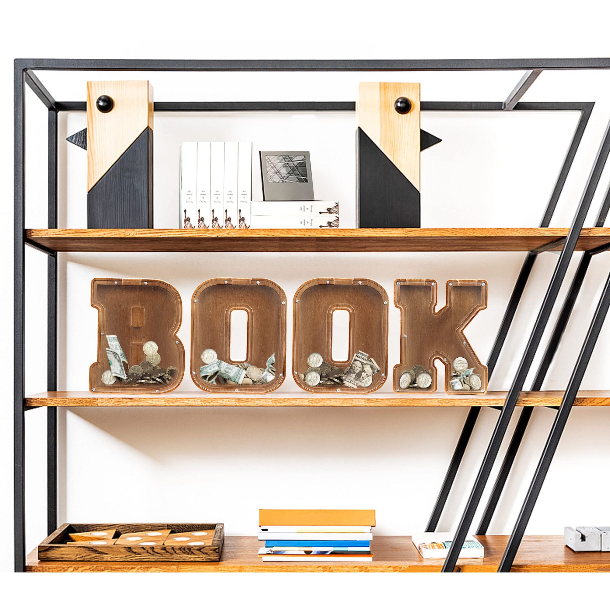 Our Personalized Letter Piggy Bank Is Very Easy To Grab Children'S Eye, Look At Absolutely Fondle Admiringly! It’S Made Of Pine Wooden And Transparent Plastic Window.