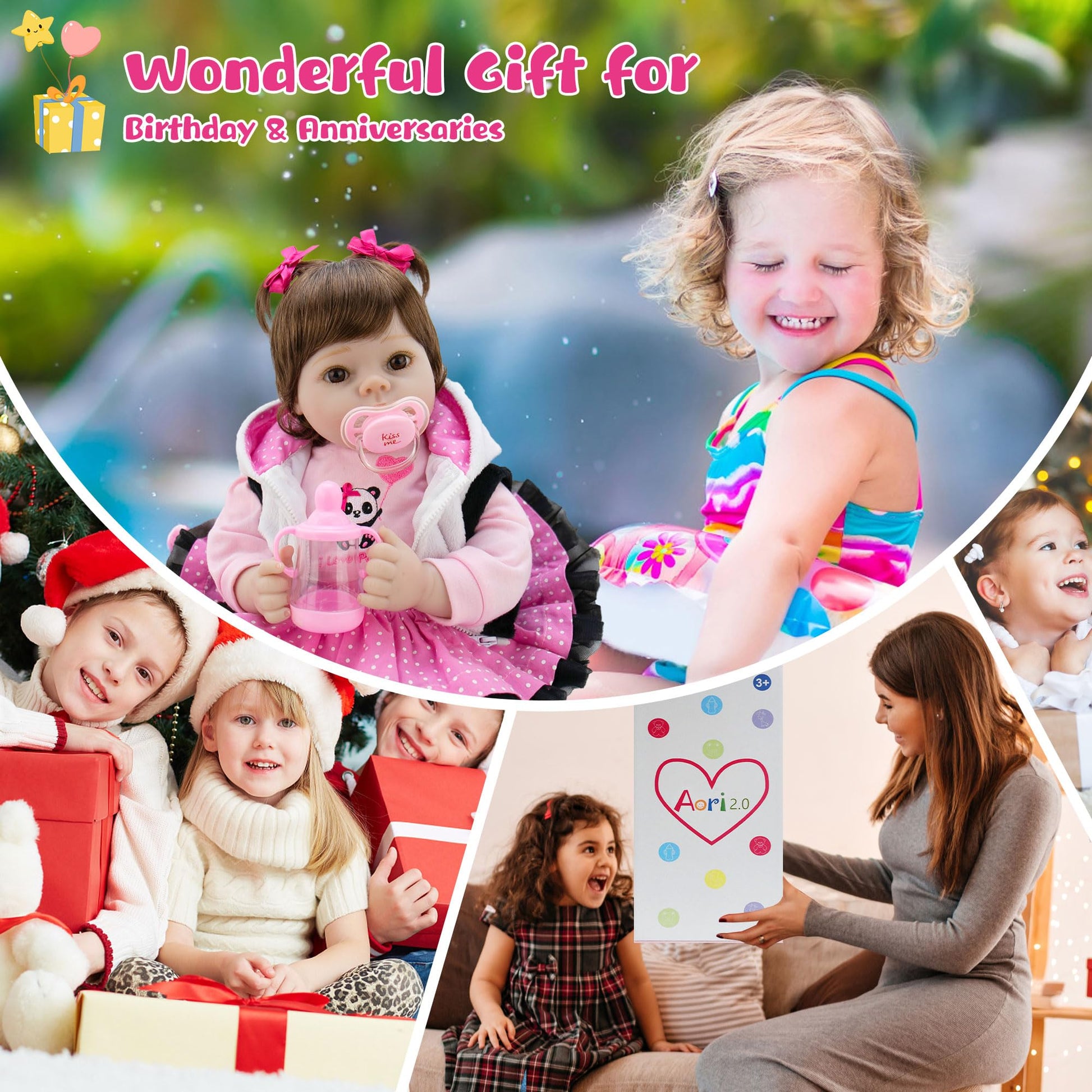Aori 2.0 Reborn Baby Dolls Girl Set- 22 Inches Realistic Soft Vinyl Newborn Baby Doll That Look Real, Best Toy For Kids Ages 3+