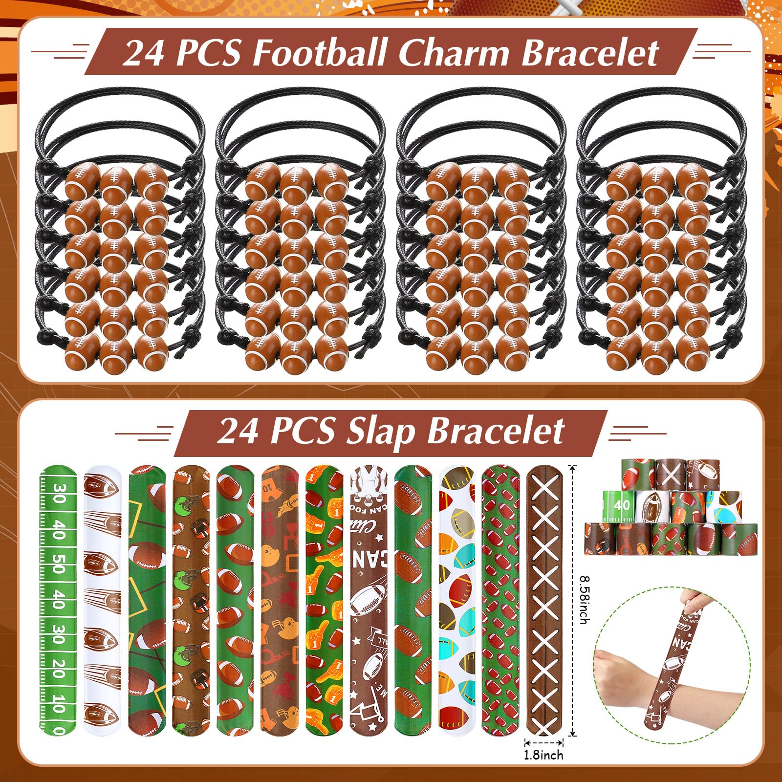 Aoriher 120 Pcs Football Sport Balls Party Favors Set Serve 24, Football Goodie Foam Finger Mini Stress Ball Slap Bracelet Charm