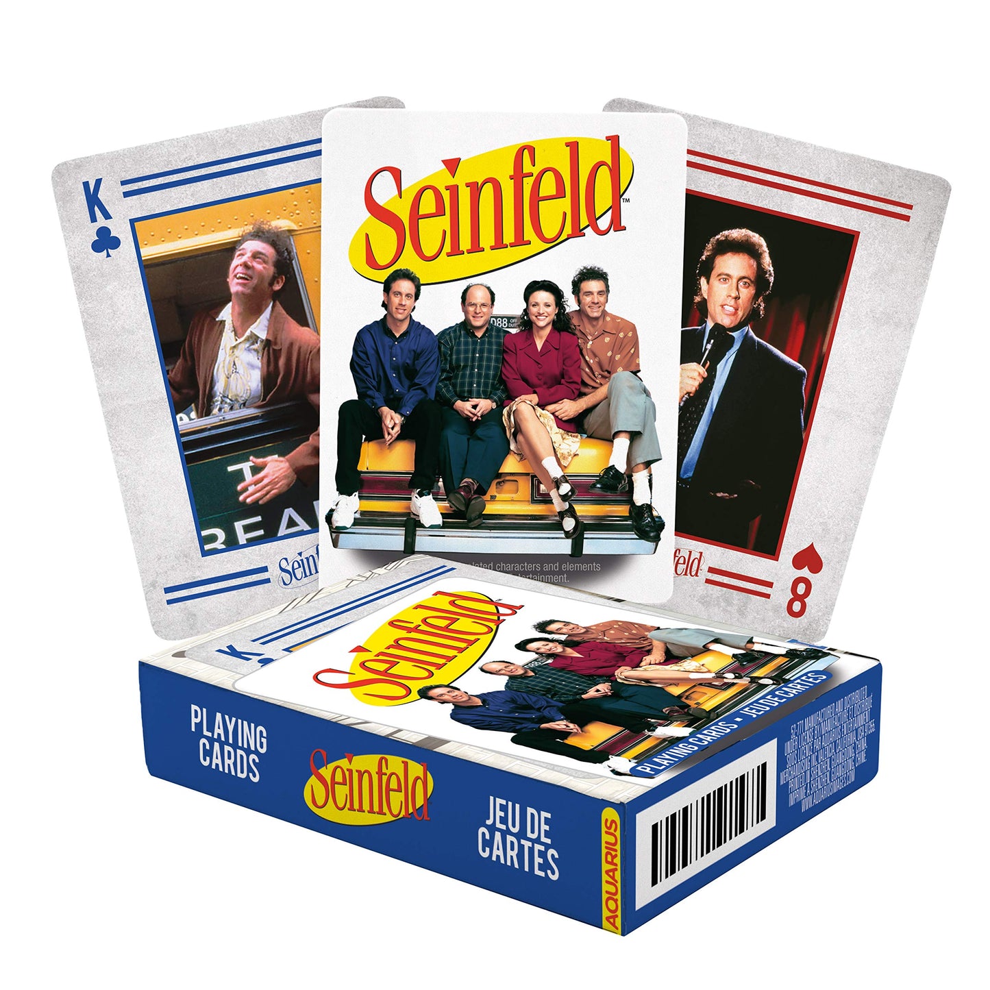 - Q: Are these Seinfeld playing cards officially licensed? A: Yes, these playing cards are 100% officially licensed Seinfeld merchandise, designed by AQUARIUS. This guarantees authenticity and makes them a great collectible for fans of the show.