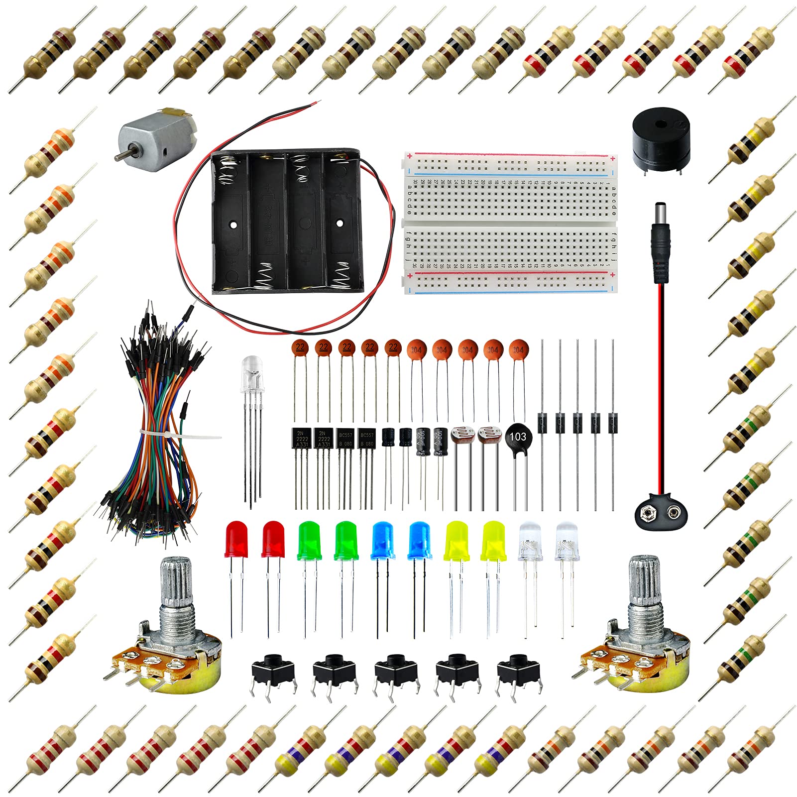 - Q: What materials are included in the Ardest Starter Kit? A: The kit features a variety of components such as a 400-point breadboard, jumper wires, LEDs in multiple colors, resistors, capacitors, motors, a piezo buzzer, and more. This diverse selection ensures you have everything needed to start your electronics journey.