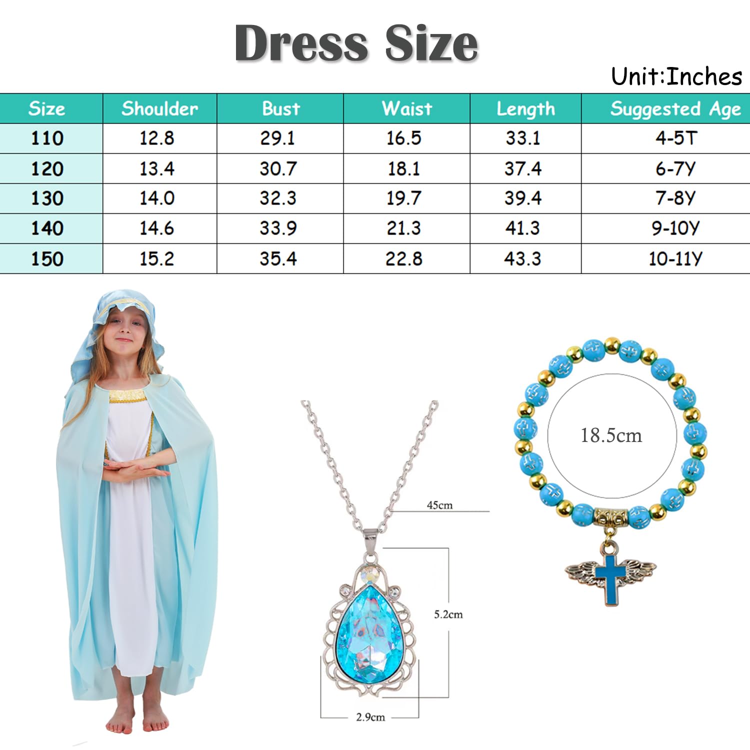 View compareAroacle Girls Virgin Mary Costume Saint Mary Biblical Outfit Religious Nativity Dress For Kids With Cape And Headpiece (6-7Y)