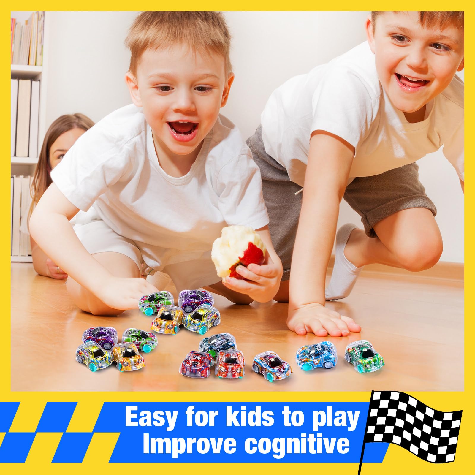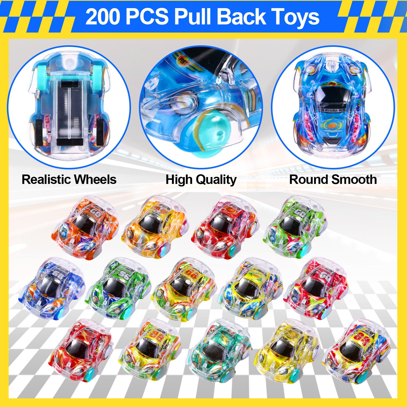 Features: Colorful style: These mini cars come in diverse and appealing colors, elevating the pleasure of playing. The vibrant variety encourages learning and distinguishing colors. Interactive fun: These cars aren't just toys, they are tools that inspire interaction. Whether it's a parental time or multiplayer games among friends, our mini pull back cars pave the way for bonding, sharing, and lots of laughter. Specifications: Material: plastic Color: as shown on the picture Size: about 1.38 x 1.77 x 0.79 inches/ 3.5 x 4.5 x 2 cm Package includes: 100 x Mini pull back cars Notes: Manual measurement, please allow slight errors on size. The color may exist a slight difference due to different screen displays. Suitable for people over 12 years old, and it's recommended to use under the supervision of adults in case of choking risk.