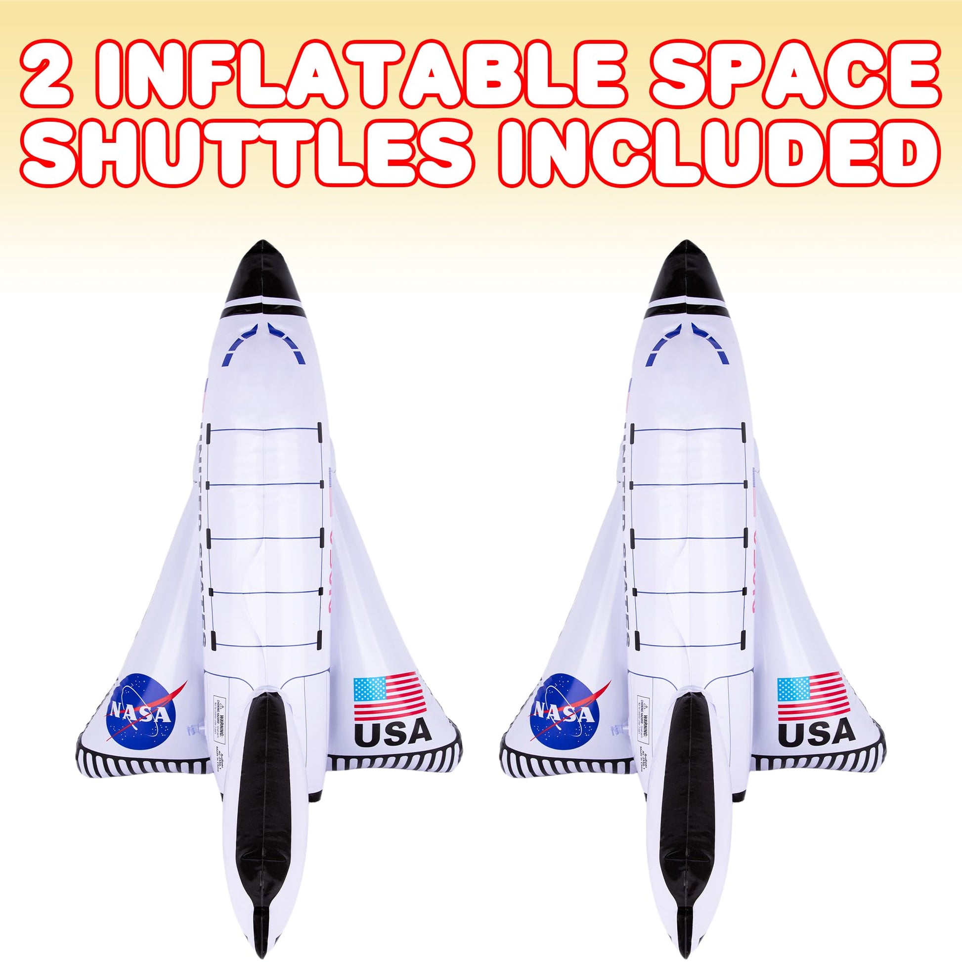 CREATE D COR THATS OUT OF THIS WORLDInvite Compliments Eye-catching inflates that are a recipe for wonder-filled looks! Whether youre throwing an outer space-themed party or on the hunt for kids room d cor that wont go unnoticed, these space shuttle inflates spruce up any room with high-flying character. Every pack comes with a SET OF 2 inflates, each measuring 14 long when fully inflated and designed with a realistic touch of color. Just fill them with air (sold deflated) and create d cor thats ripe for compliments.Great Gift Idea Shopping for a birthday present to crown that little ones special day? A Christmas or holiday gift thats guaranteed to spark toothy smiles at first glimpse? These space shuttle inflates are just what you need to blow that kiddo away! Theyre great for both boys and girls and also work as pretend play toys for kids with astronaut aspirations. Get to make kids smile without having anything to lose!Heres why youll love space shuttle inflates:?Every pack comes with 2 (14 ) space shuttle inflates.?Great as decorative accessories or pretend play toys for kids.?Made of durable vinyl to withstand all the action.?Ideal as cool space birthday party favors for kids 3+Go ahead, give any space some attention-grabbing character!