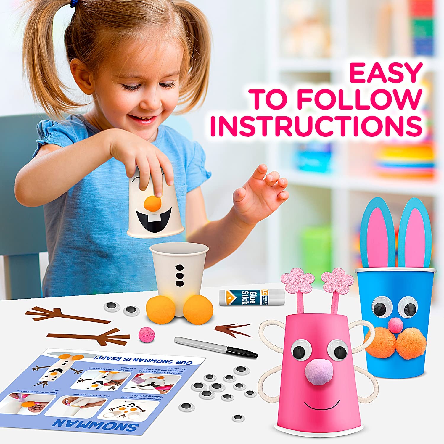 Arts and Crafts Kit for Kids Ages 3, 4, 5, 6 - Craft 8 Cute Animal Projects - Gift Crafts Set for Girls & Boys Ages 3-8