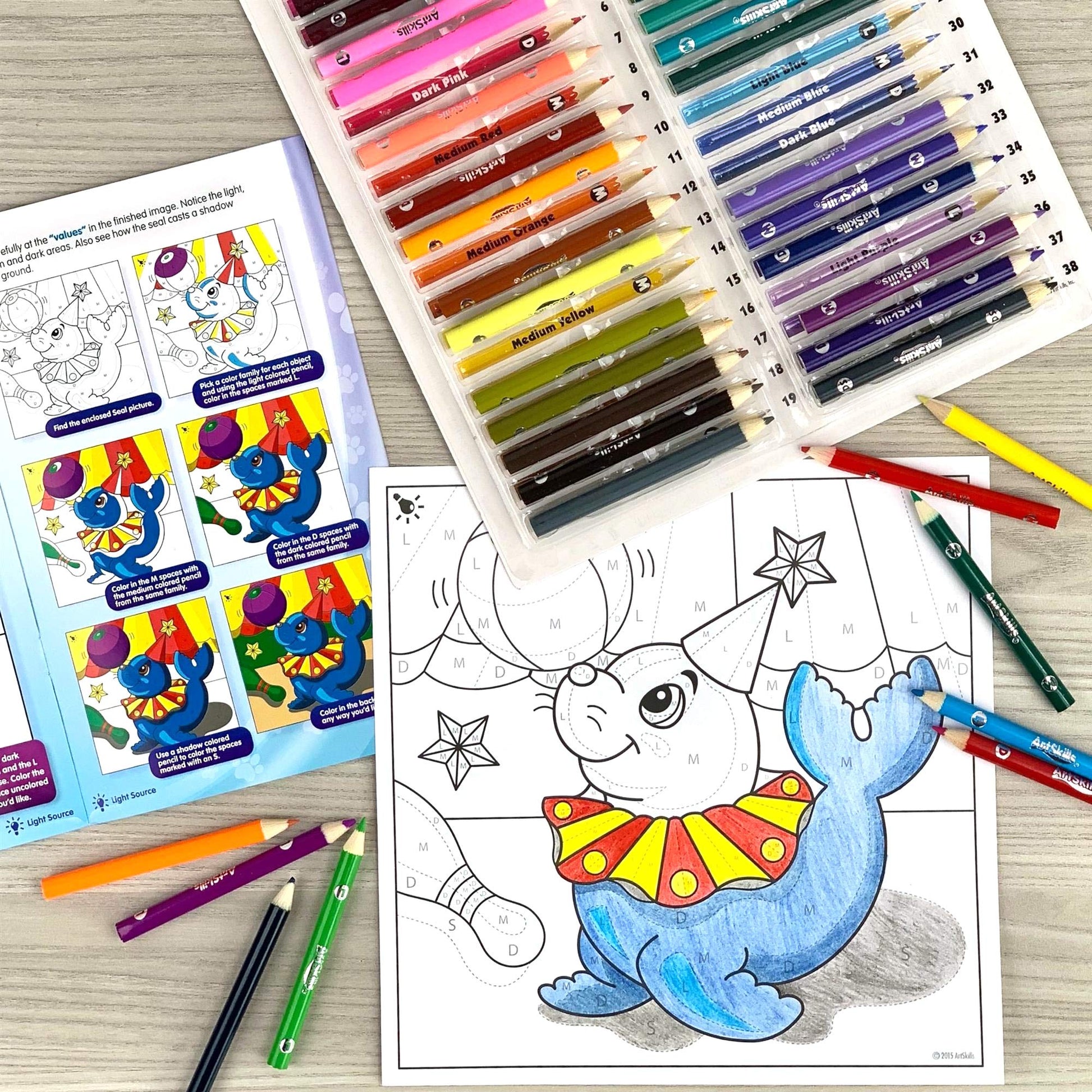 Learn the Magic of Shading with ArtSkills Color Shaders Colored Pencil Kit! Each kit includes 12 specially marked project sheets and 38 shading pencils. The pencils come in sets of light, medium and dark allowing you to create awesome shading effects instantly! When coloring the project sheets, just decide what color you want an area to be and then use the light/medium/dark pencils to color it in then watch your creationscome to life!