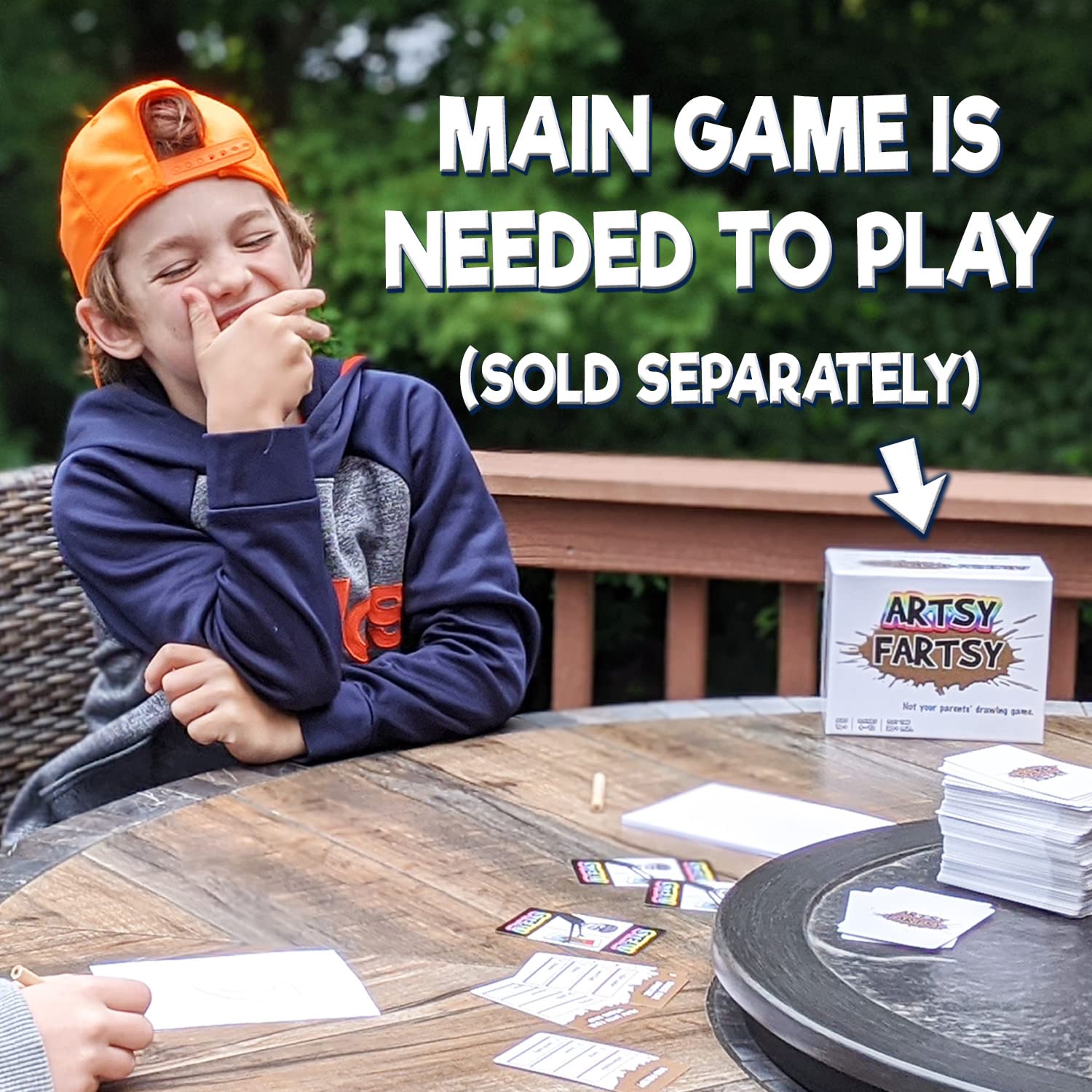 New Content And Categories To Expand On The Award Winning Game For All Ages. This Deck Includes 100 Cards, A Few Of Which Are Blank So You Can Add Your Own Hilarious Ideas! Artsy Fartsy Base Game (Not Included) Required To Play. This Two-Time Usa Today Best Gift For Families Award Winning Family Game Is Filled With Clues That Are Fun To Draw! Team Up With Family And Friends To Draw, Guess And Steal Clues That Will Have The Whole Gang Laughing Out Loud! Think Pictionary - Style, But So Much More With Plenty Of Twists! This Is The Best Game For The Crowd That Likes Not Parent Approved, Kids Against Maturity, Kids Create Absurdity, Cards Against Humanity Family Or Telestrations. Its A Fun Board Game For Families That Makes Great A Gift Idea For Tweens, Girls, Boys, Teens, And Adults. It Makes A Great Stocking Stuffer And White Elephant Gift And Is Perfect For Game Night, Sleepovers, Birthday Parties, Office Parties, Camping Trips, And Travel! Know A Kid With Lots Of Drawing Or Art Supplies? This Gift Is Right Up Their Alley And Has Made The Holiday Gift Guide For Family Games For Kids And Adults As A Whole Family Gift Idea. P.S. If You'Re One Of Those Parents Who Doesn'T Like Harmless, Sporadic Toilet Humor, You Should Definitely Buy It, Loosen Up, And Learn To Laugh With Your Kids.