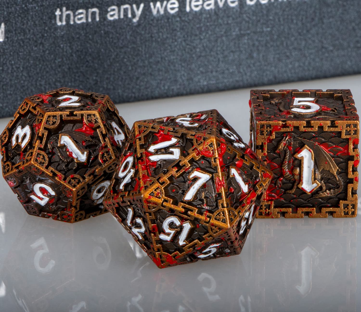 View compareARUOHHA 7PCS DND Metal Dice Set Antique Gold Blood Polyhedral Dice Set with Gift Box, Large D&D Dice for Dungeons and Dragons RP