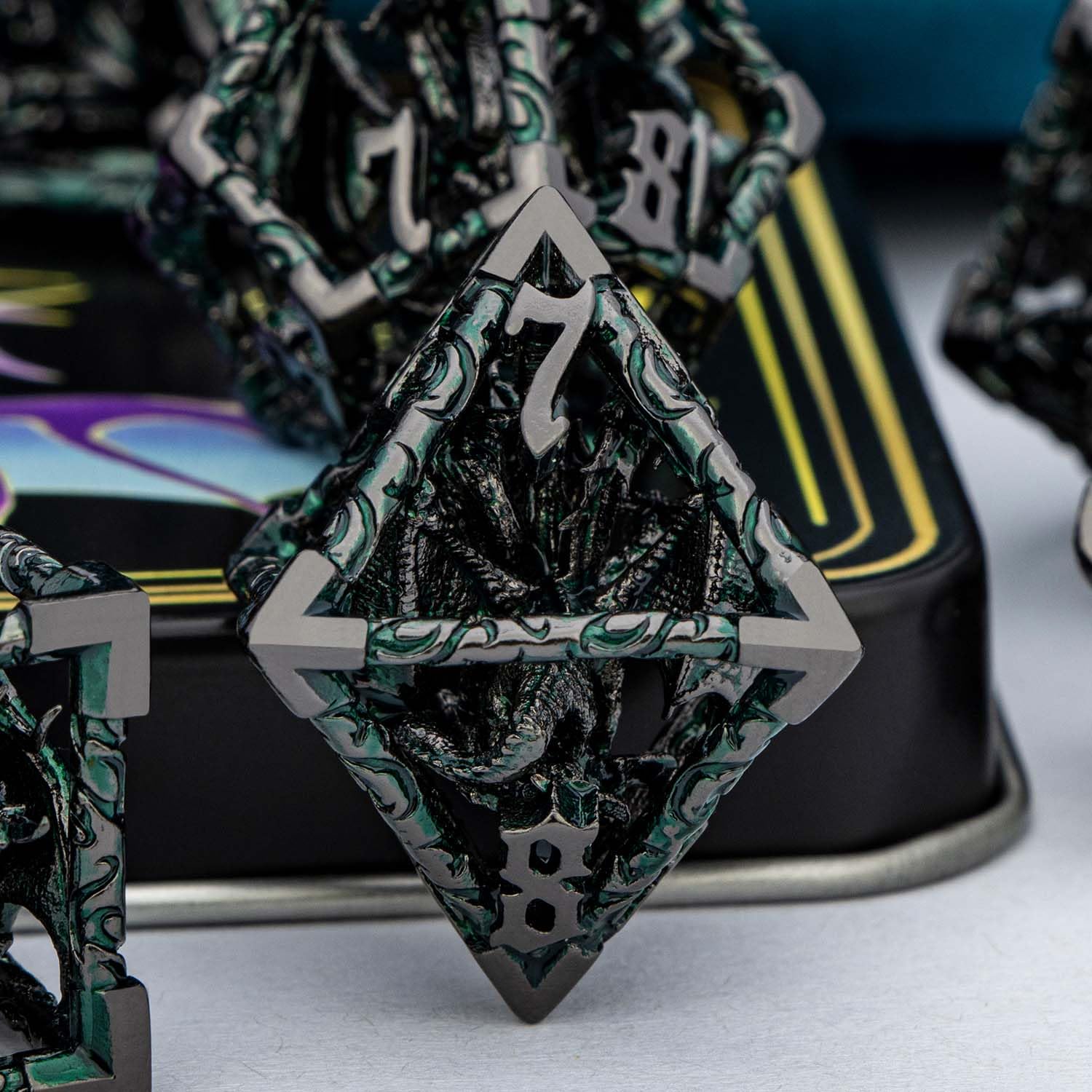 View compareARUOHHA Hollow DND Dice Set Black Green 5-Headed Dragon D and D Dice with Gift Box, Dungeons and Dragons Role Playing Games 7PCS