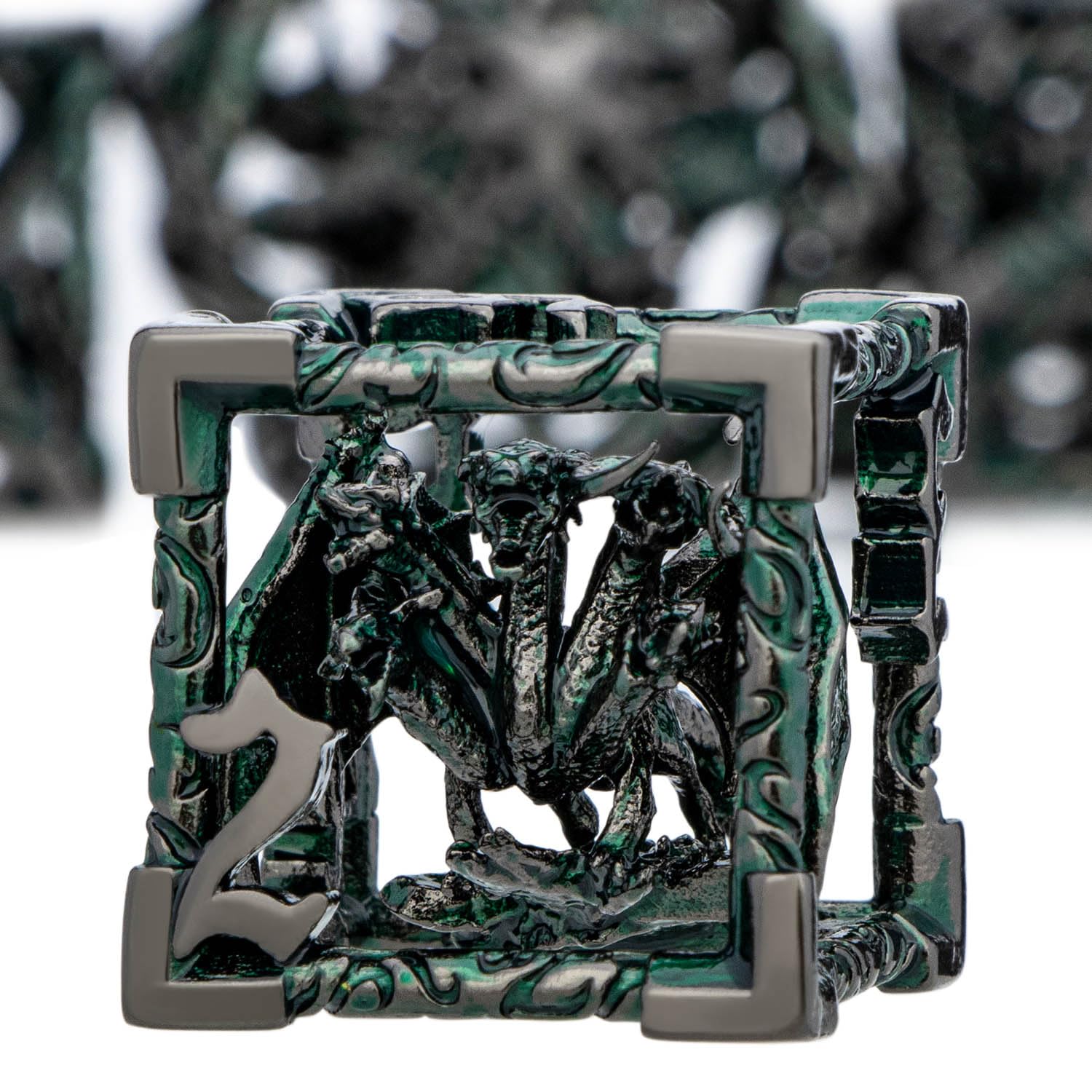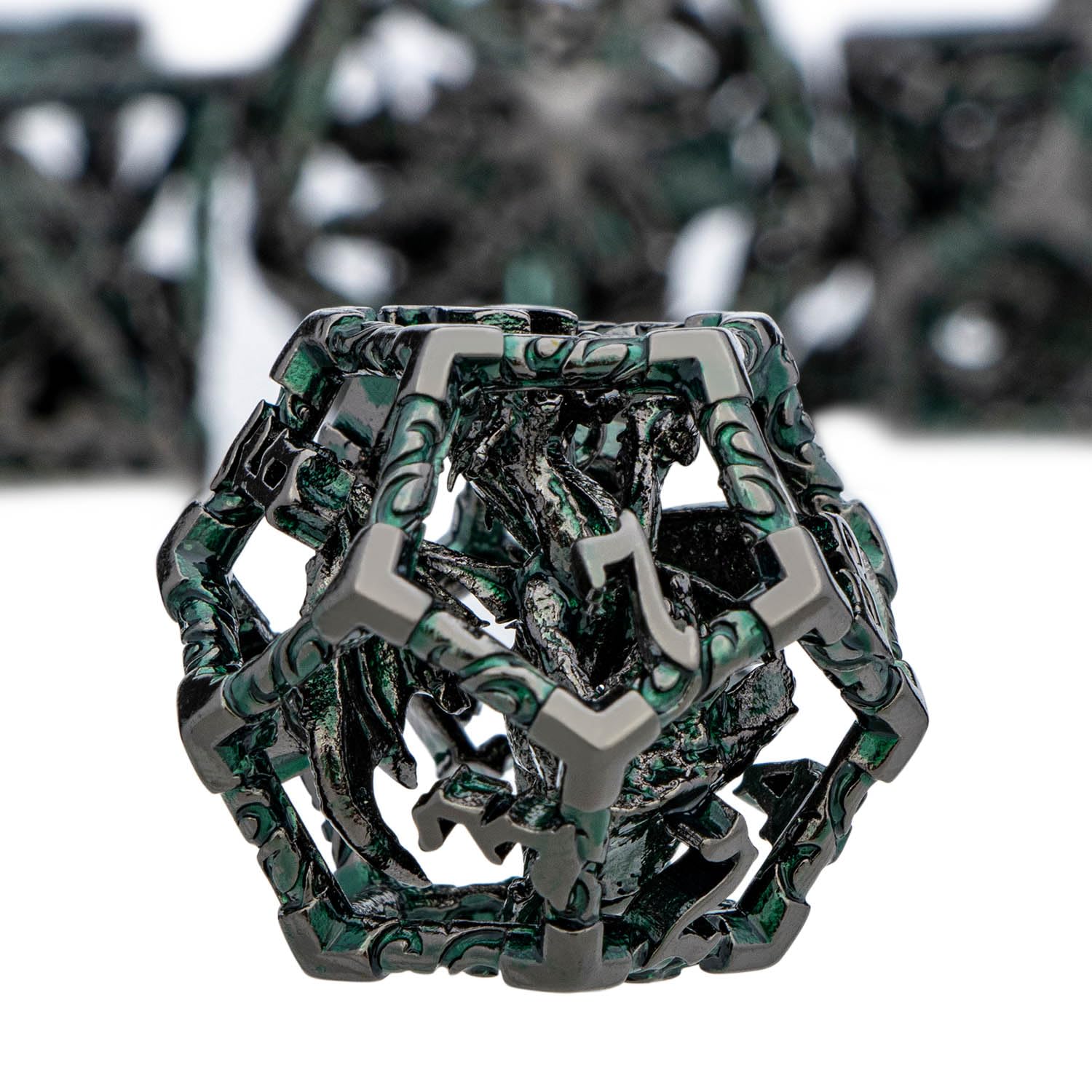 ARUOHHA Hollow DND Dice Set Black Green 5-Headed Dragon D and D Dice with Gift Box, Dungeons and Dragons Role Playing Games 7PCS