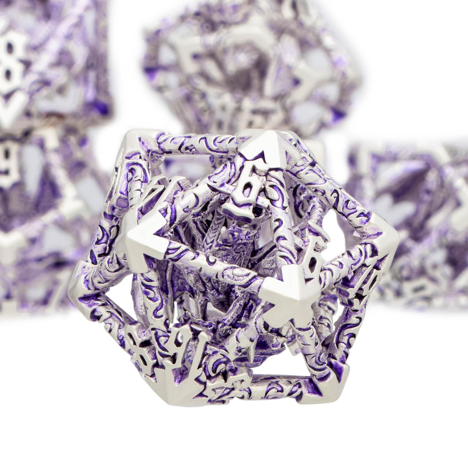 Aruohha Hollow Dnd Dice Set Silver Purple 5-Headed Dragons D And D Dice With Gift Box, Role Playing Games Rpg 7Pcs Dungeons Meta