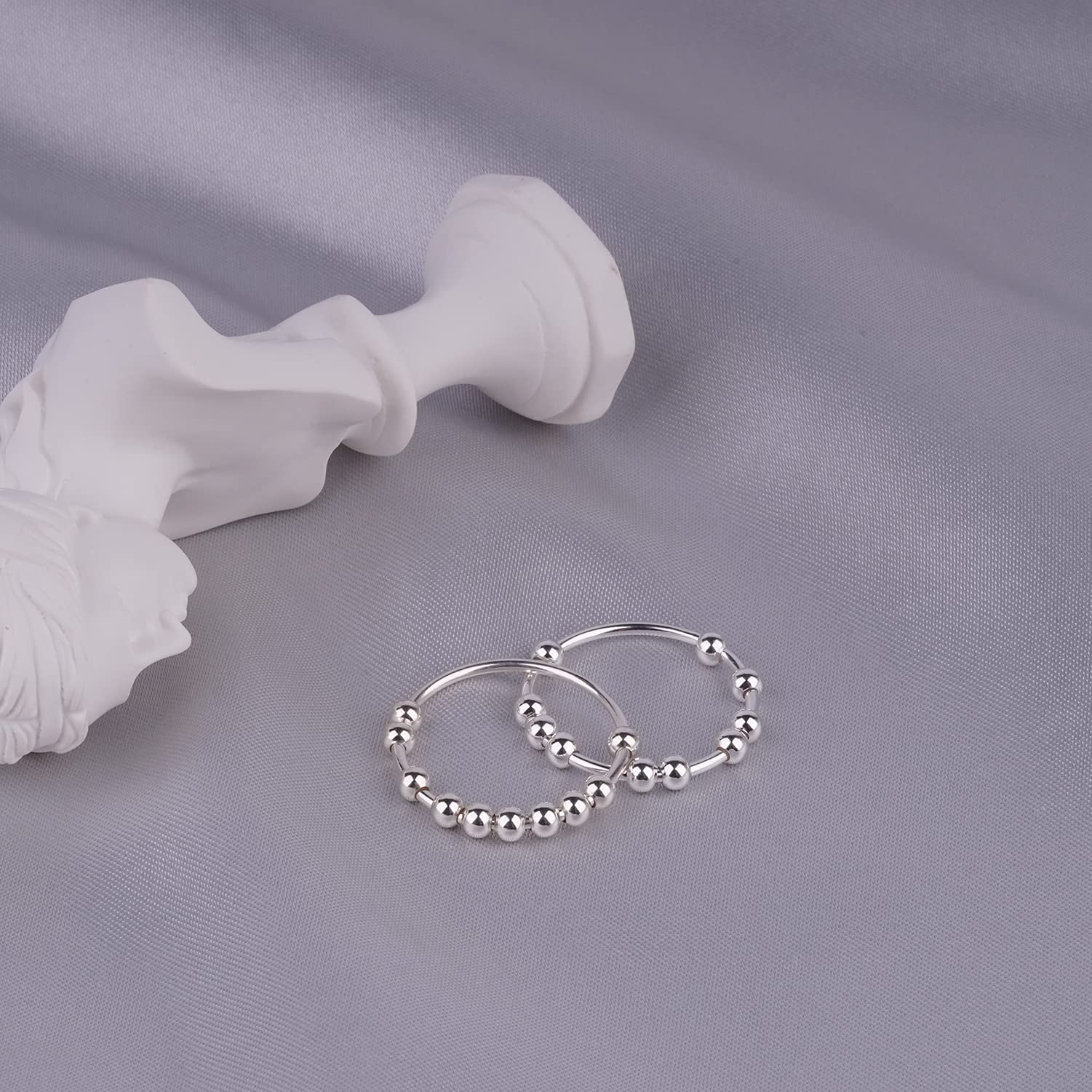 View compareAsgift 925 Sterling Silver Anxiety Ring For Men Women Fidget Ring With Beads Stackable Stress Relieving Spinner Rings (Size-11)