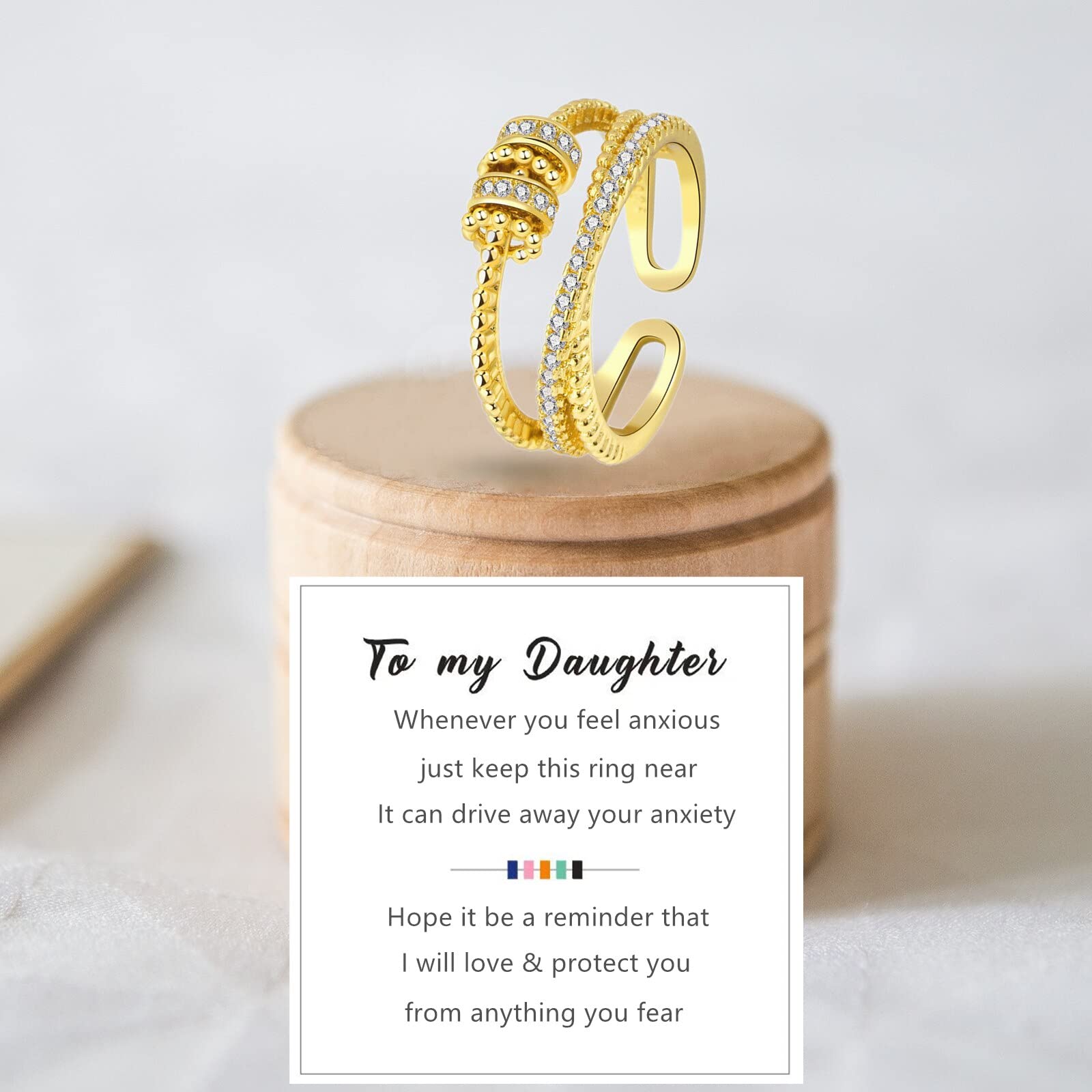Askljeby Anxiety Ring for Daughter, 18K Gold Fidget Ring for Daughter from Mom to My Daughter Cubic Zirconia Adjustable Thumb St