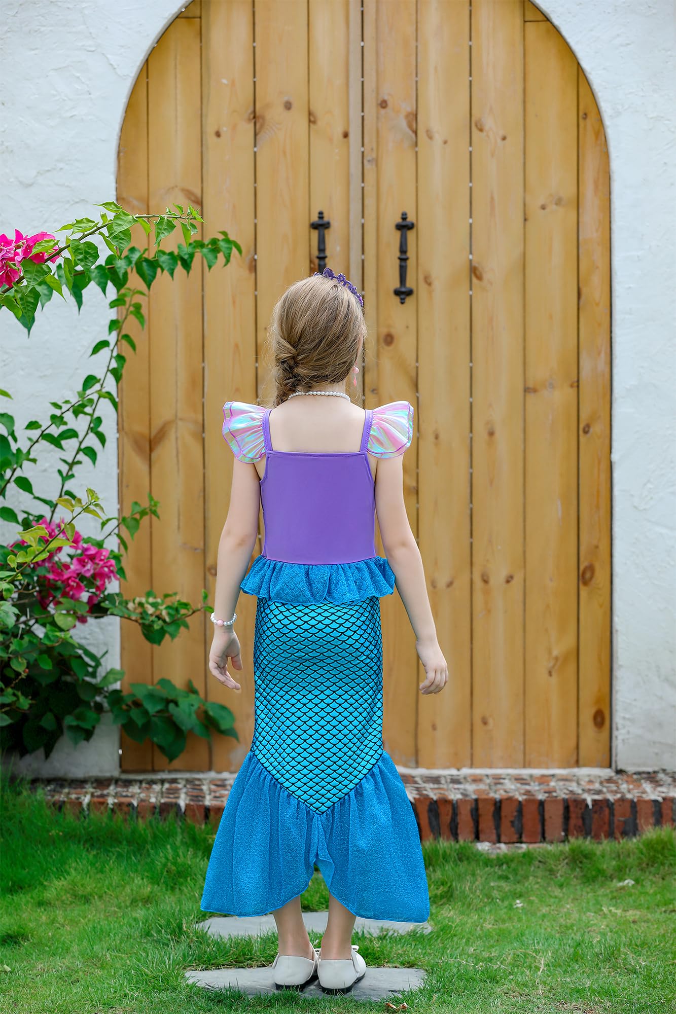 Princess Little Mermaid Costume For Girls With Mermaid Crown Necklace Princess Mermaid Cosplay Dress Up For Birthday Party Halloween Costume Christmas Gift, Mermaid Outfit For Girls Super Value Mermaid Toddler Costume Pack For Role Play (Vestido De Sirena Para Nia). Perfect For Halloween Dress Up Parties, Little Girl Mermaid Costume, Mermaid Themed Parties, Halloween Costume Dress Up,Mermaid Role Play, Activity, Everyday Play And More! (Disfraz De La Sirenita Ariel Para Nia) Various Use: The Princess Costume/Mermaid Dress For Girls Are Suitable For Halloween Cosplay, Christmas Gifts, Birthday Party, Purim Cosplay, Princess Dress Up, Photography Prop, Holiday Party, Outdoor Festival Or Daily Wear. Set Includes: 1 Mermaid Dress 1 Tiara/Crown 1 Necklace 1 Bracelet 1 Pair Of Earrings 1 Ring 1 Mermaid Bag Size: Tag Size: 100 Cm: 2-3 Years 110 Cm: 3-4 Years 120 Cm: 4-5 Years 130 Cm: 5-6 Years 140 Cm: 6-8 Years