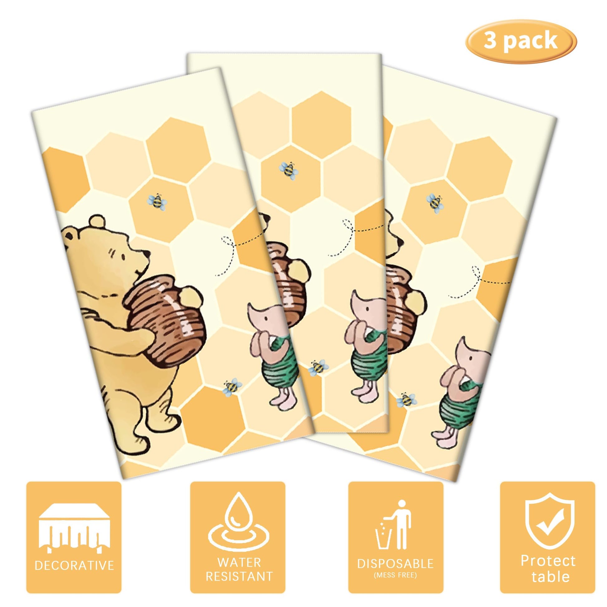 Auroraparty 3Pcs Winnie Party Tablecloth Bear Baby Shower Or Birthday Party Table Cover Honey Plastic Rectangle Birthday Party D