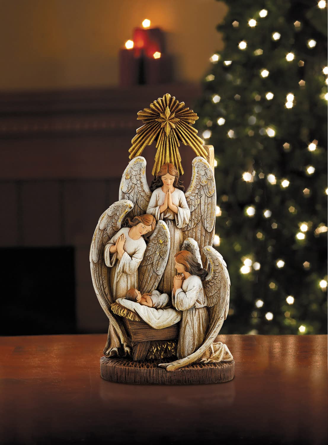 Avalon Gallery Cbc Group Advent And Christmas Resin Figurine, 13-Inch, Angels In Adoration