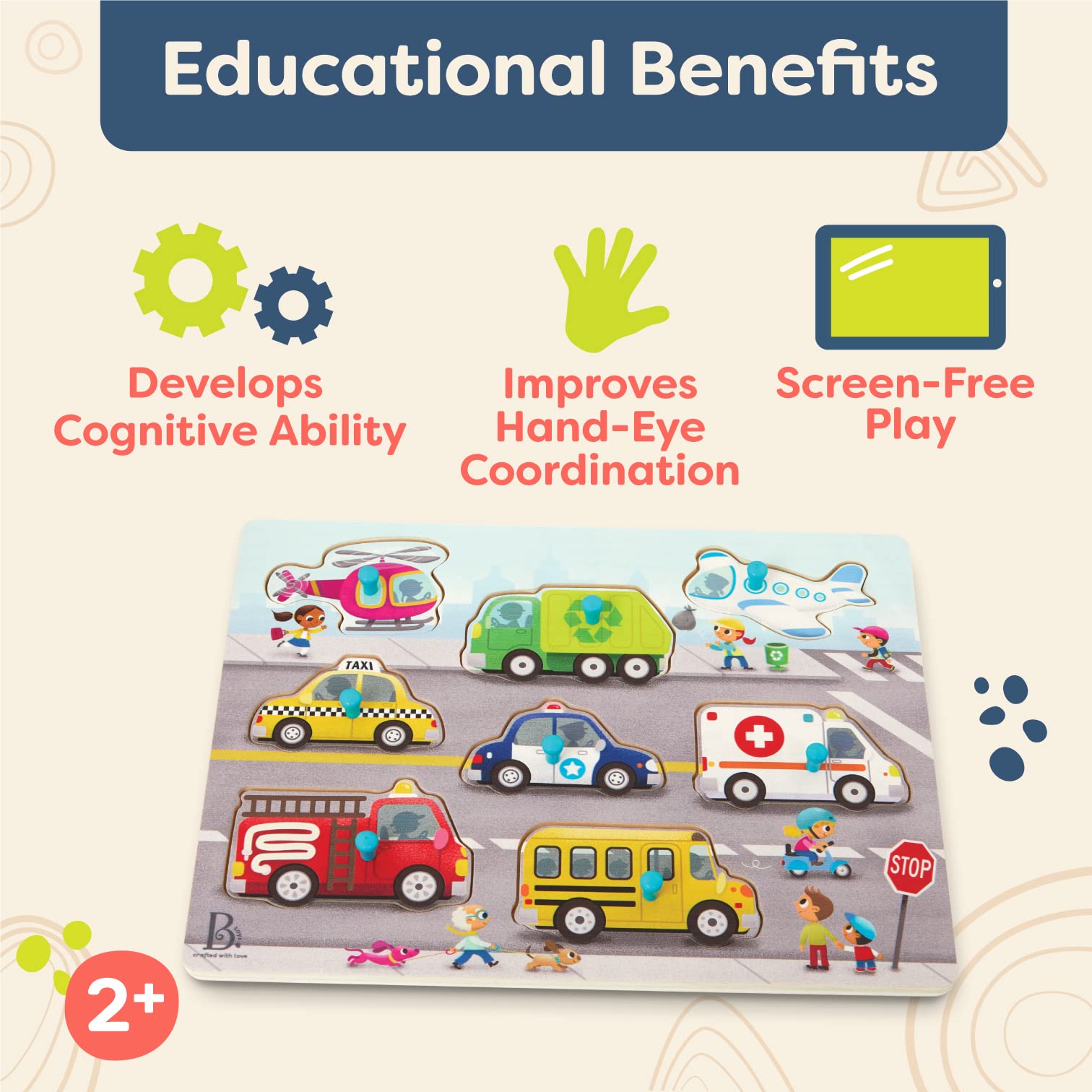 View compareB. Toys- Peek & Explore - Vehicles- Wooden Peg Puzzle – Vehicle Puzzle For Toddlers, Kids – 8 Puzzle Pieces – Fire Truck, Airplane, Taxi & More – 2 Years +