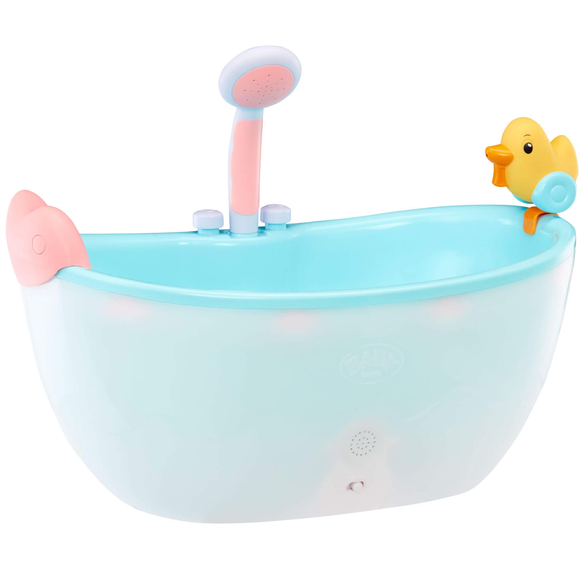 BABY born Baby Doll Musical Light Up Bathtub makes bath time so much fun! It's the perfect addition to the BABY born Doll Accessories Collection. It plays music, lights up and features a motorized showerhead that sprays water. No pumping required! For use with dolls designed for water play. Doll not included. Includes a toy rubber duck that squirts water and a heart-shaped neck pillow. This bathtub is thoughtfully designed using premium materials for a sturdy, modern look. Fits dolls up to 17 inches. Perfect for girls and boys ages 3 years old and up. From MGA Entertainment, creators of LOL Surprise™ OMG fashion and collectible dolls and pets, Rainbow High™ posable fashion dolls, Mermaze Mermaidz™ mermaid dolls with color change, MGAE Miniverse, Na Na Na Surprise dolls, Bratz® fashion dolls, MGA's Dream Ella™ fashion fairy princess and unicorn dolls, MGA's Glitter Babyz™, Lalaloopsy™, Baby Born® Surprise baby dolls and collectibles, Little Tikes® kids toys and many other favorite brands.