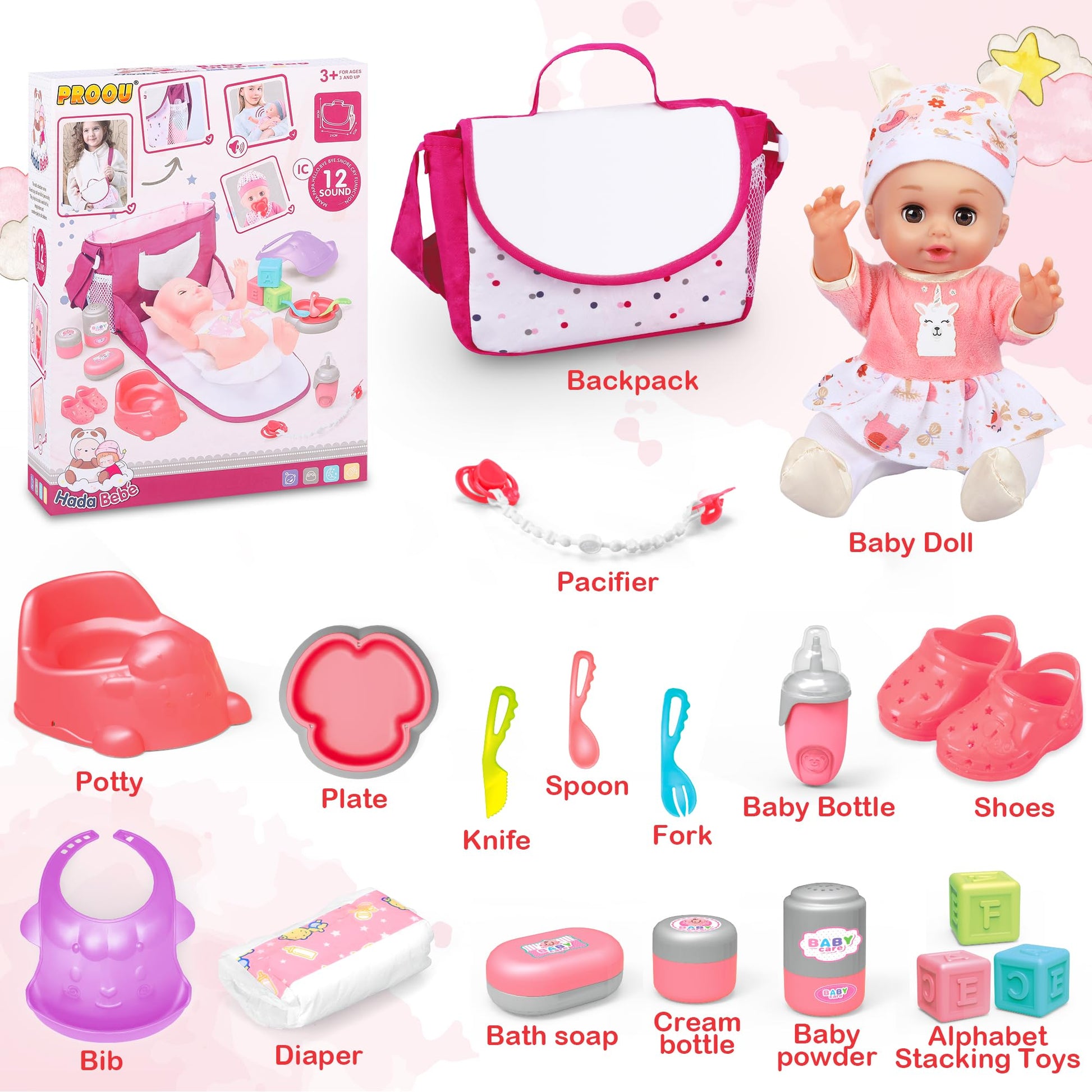 View compareBaby Doll Care Set, Baby Doll Feeding Playset 20Pcs, Realistic Pretend Play Baby Doll, Incl Baby Care Bag, Milk Bottle, Pacifier, Diaper, Clothes, B-Day Gifts For Age 3 4 5 6+ Year Old Girls Kids