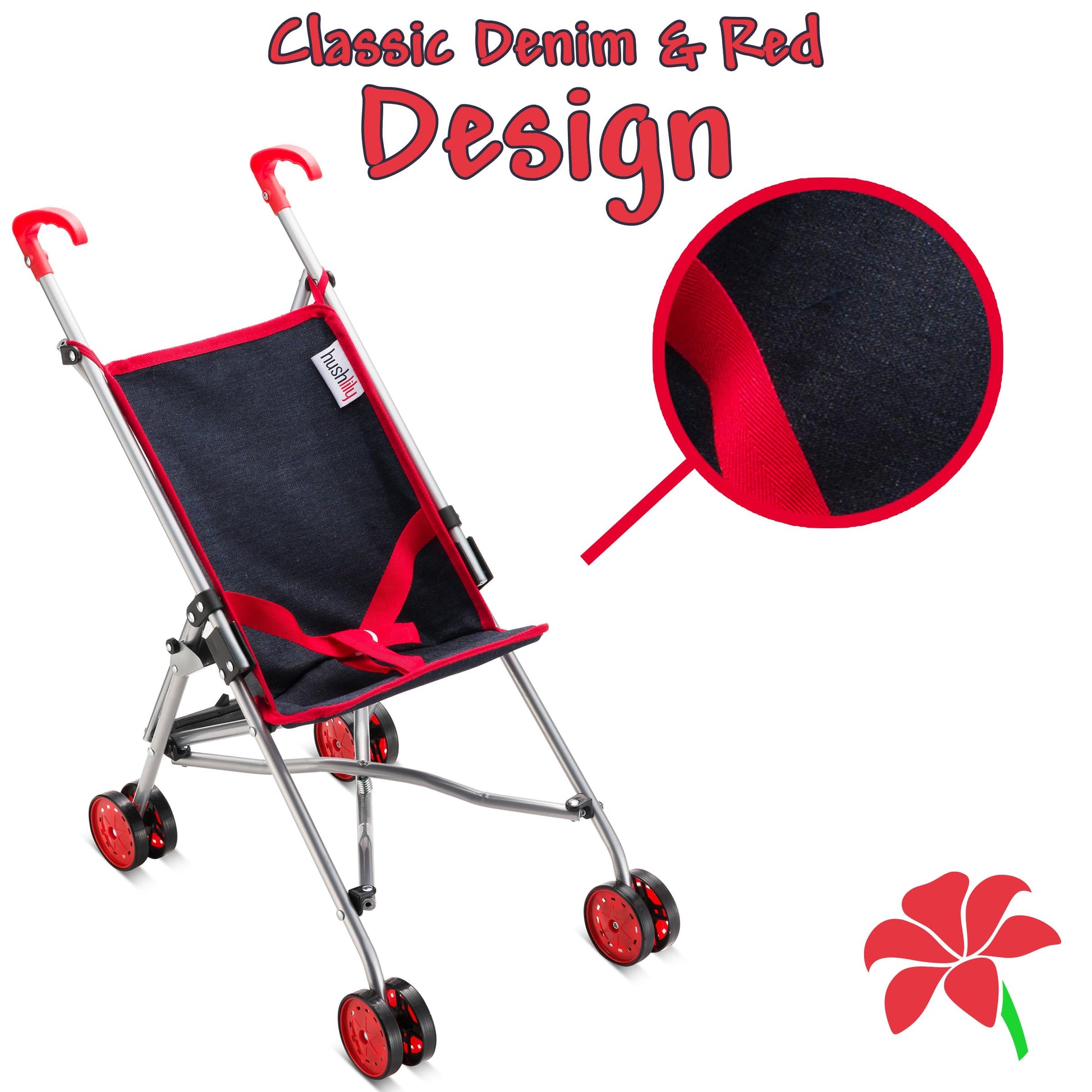 Baby Doll Stroller For Toddlers 3 Years And Up, Foldable Toy Stroller For Dolls - Denim And Red Design For Kids