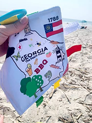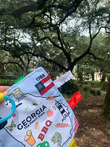 Baby Jack & Co 8x8 Learning Lovey Tag Toys for Babies - Baby Crinkle Toys - Crinkle Toys for Baby - Soft & Safe - Learn USA State Facts - Ideal Baby Toy & Gift BPA Free w/ Stroller Clip