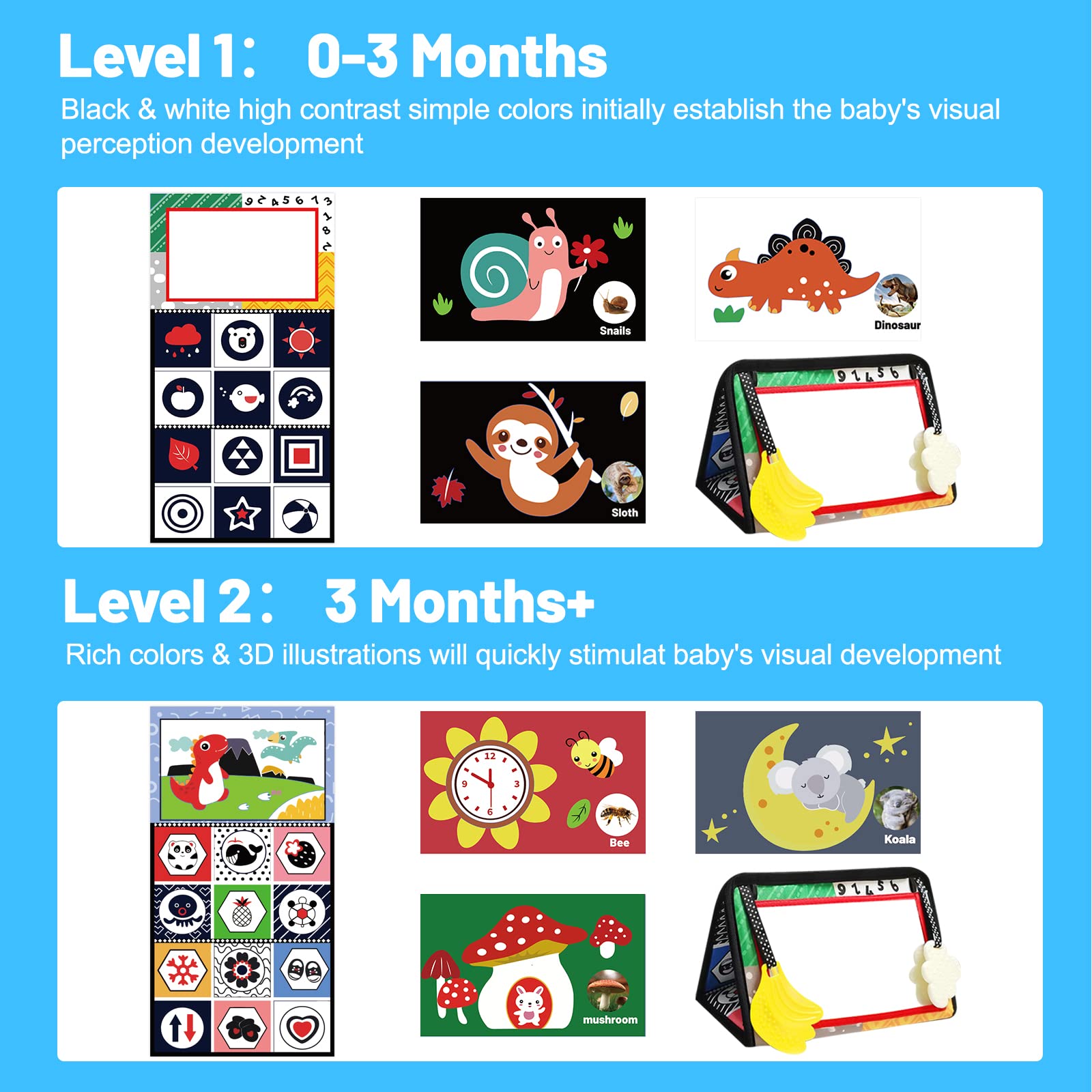 View compareBaby Mirror Tummy Time Toys, Infant Safe Baby Play Mat With Teether For Newborn 0-3-6-12 Months Old Boys,Girls, Brain Development Montessori For Crib, Floor, Car, Sensory Crinkle Soft Books Attachment