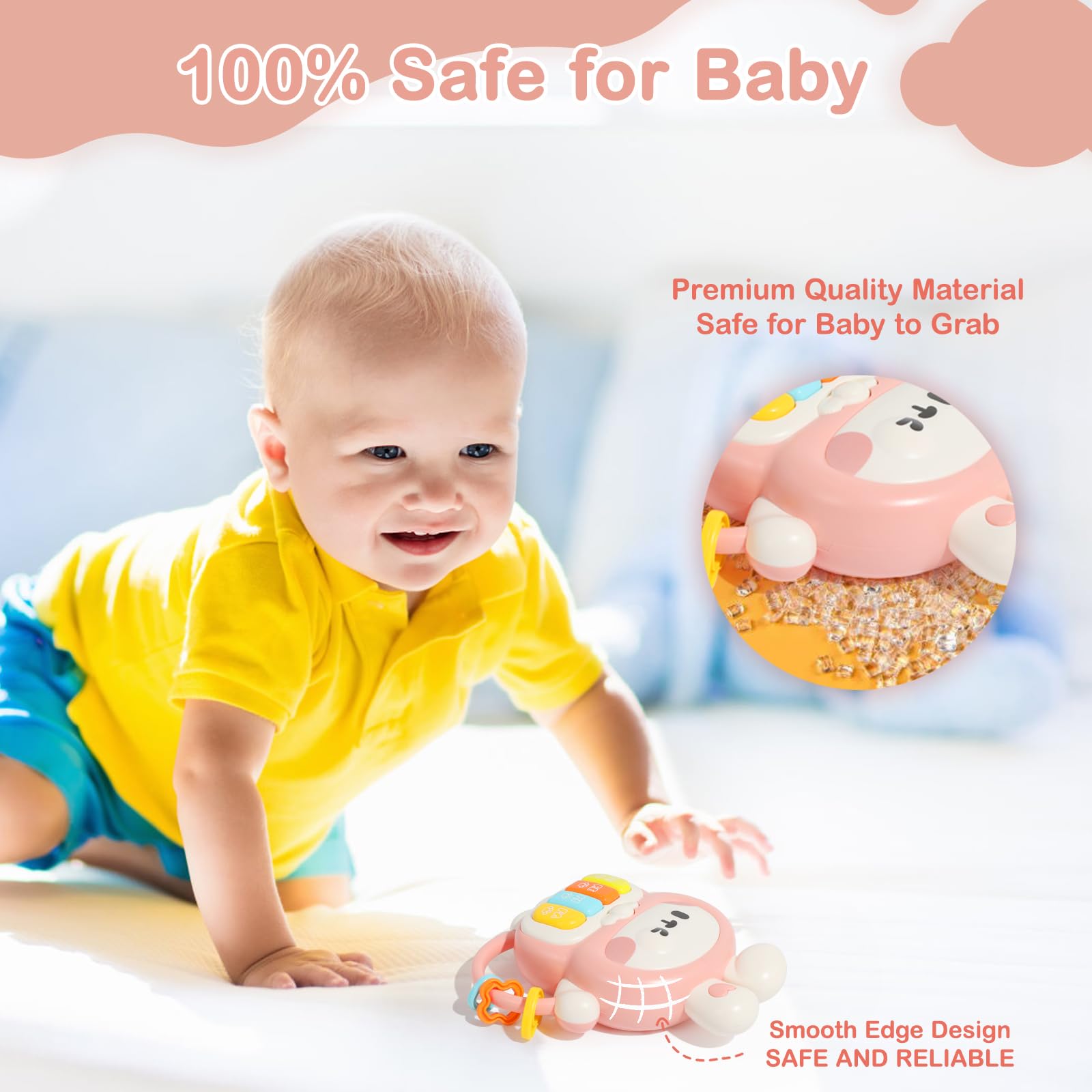 • Q: Is the Rabbit Piano safe for babies to use? A: Yes, the Rabbit Piano is made of premium ABS plastic with a smooth surface and no sharp corners, ensuring it is safe for babies, even if they put it in their mouths. It also has a comfortable volume level to protect your baby's hearing.