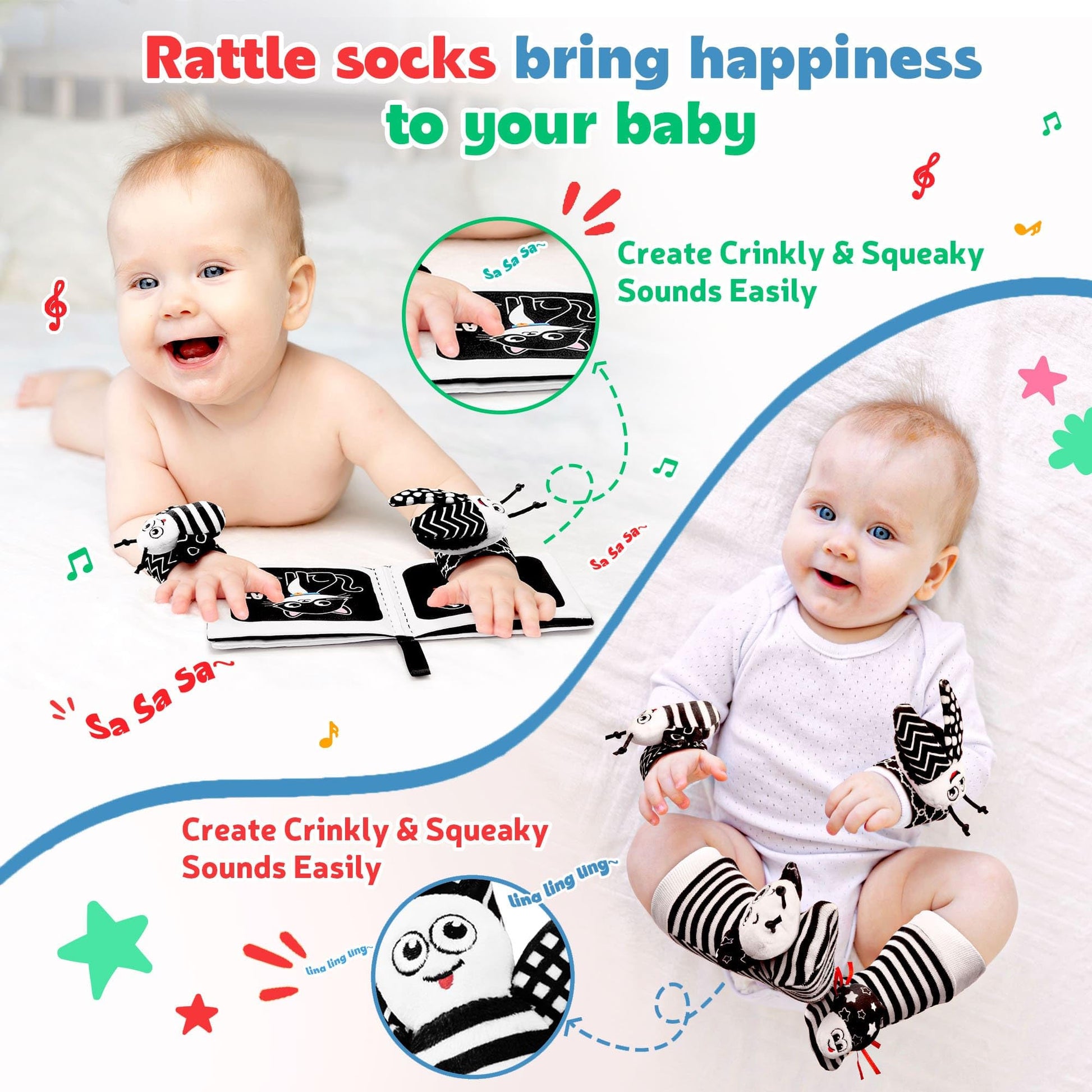 Baby Rattles Toys For 0-12 Month: Infant Toys 0-6 Months Baby Socks And Wrist Rattle Newborn Toys Baby Gifts For Boys And Girls - High Contrast Baby Toys For Newborn Infant Books Hand & Foot Toys